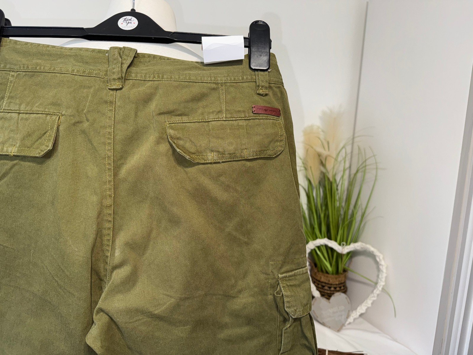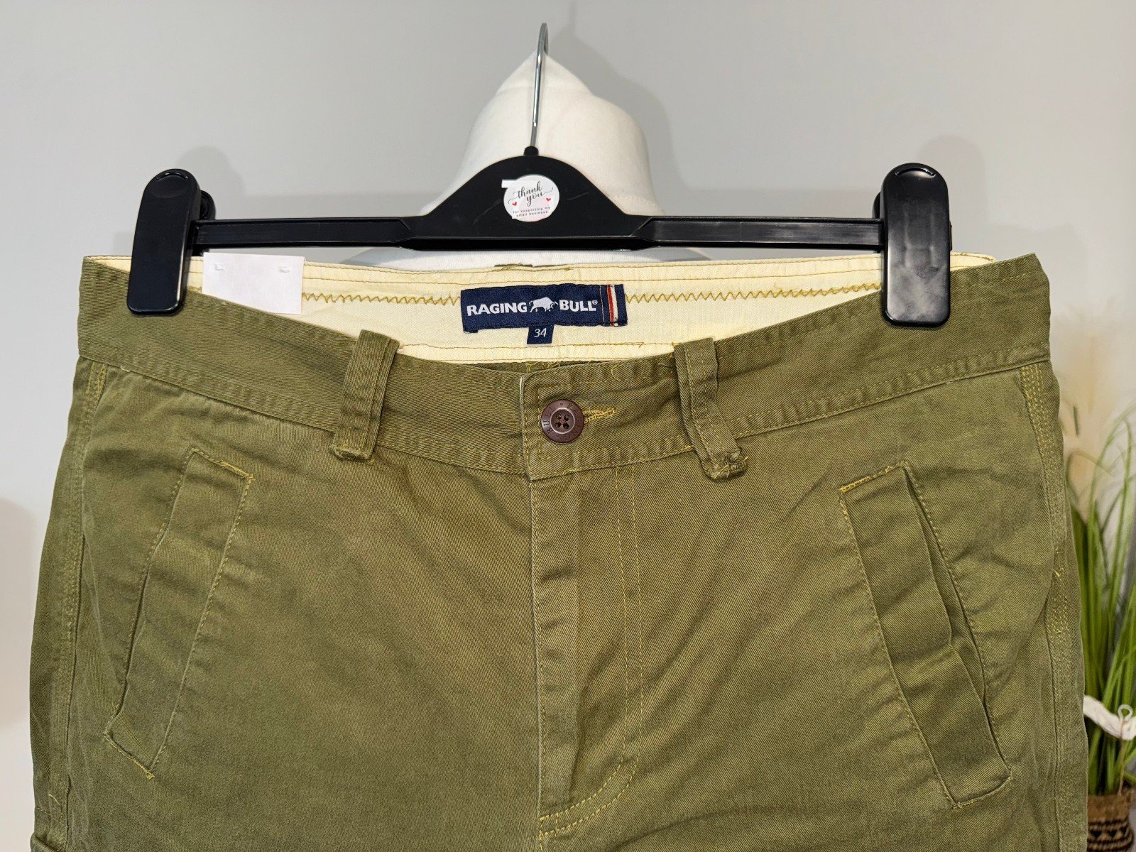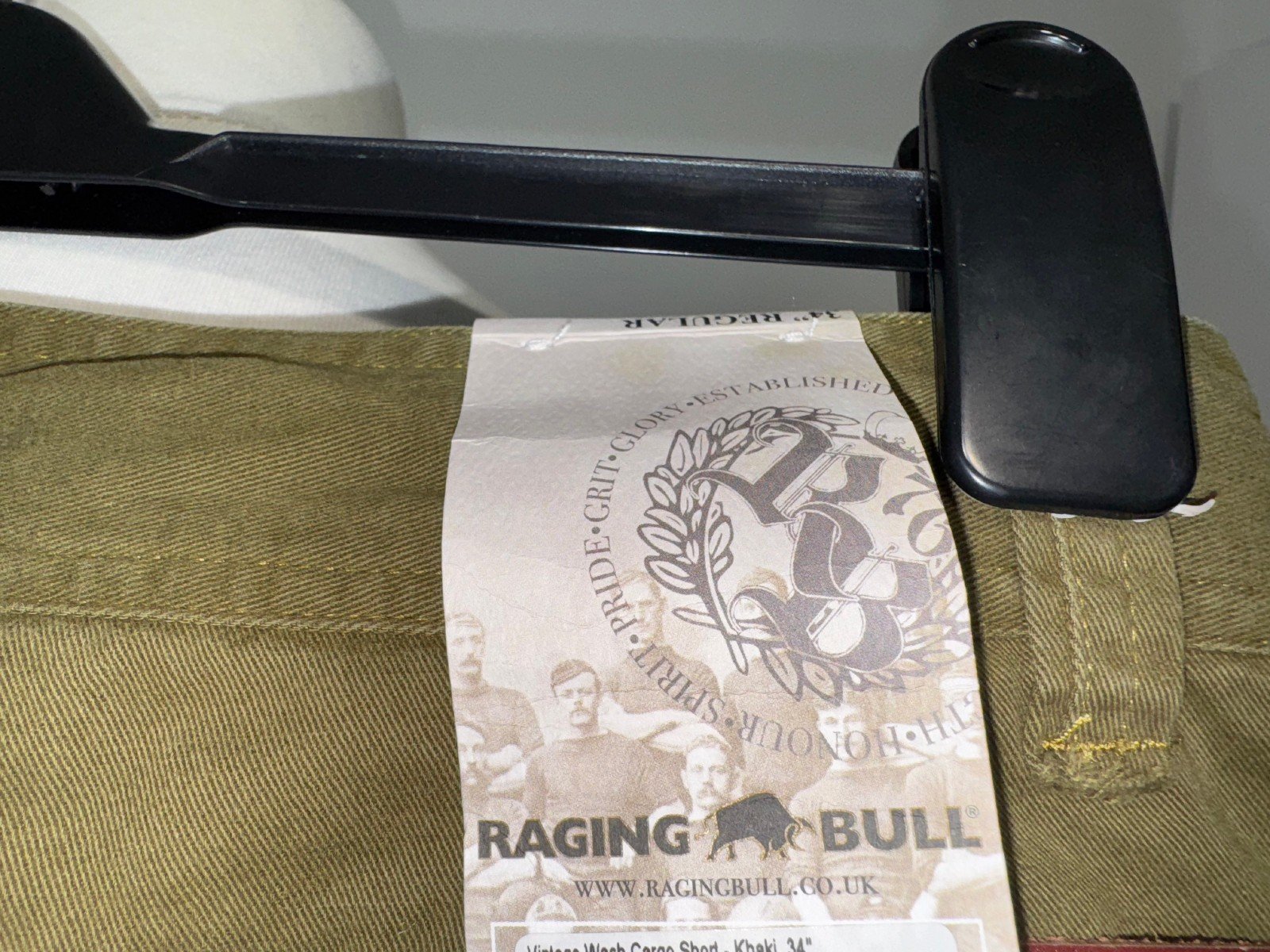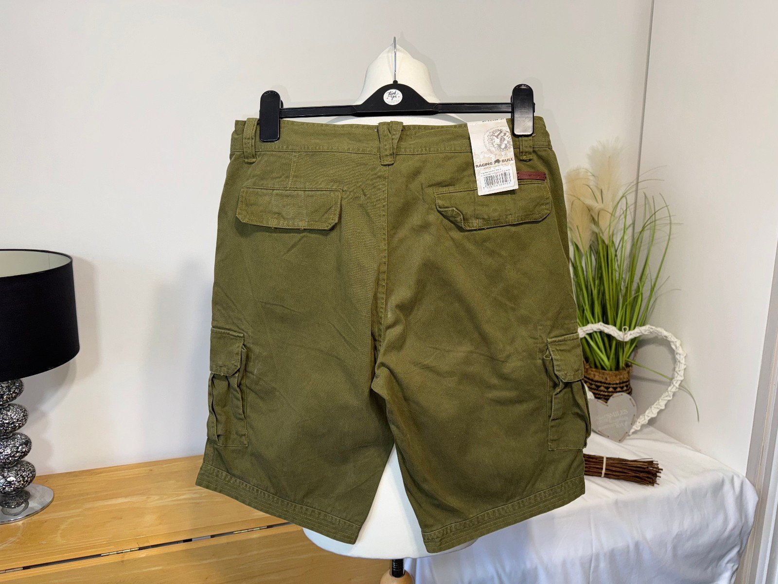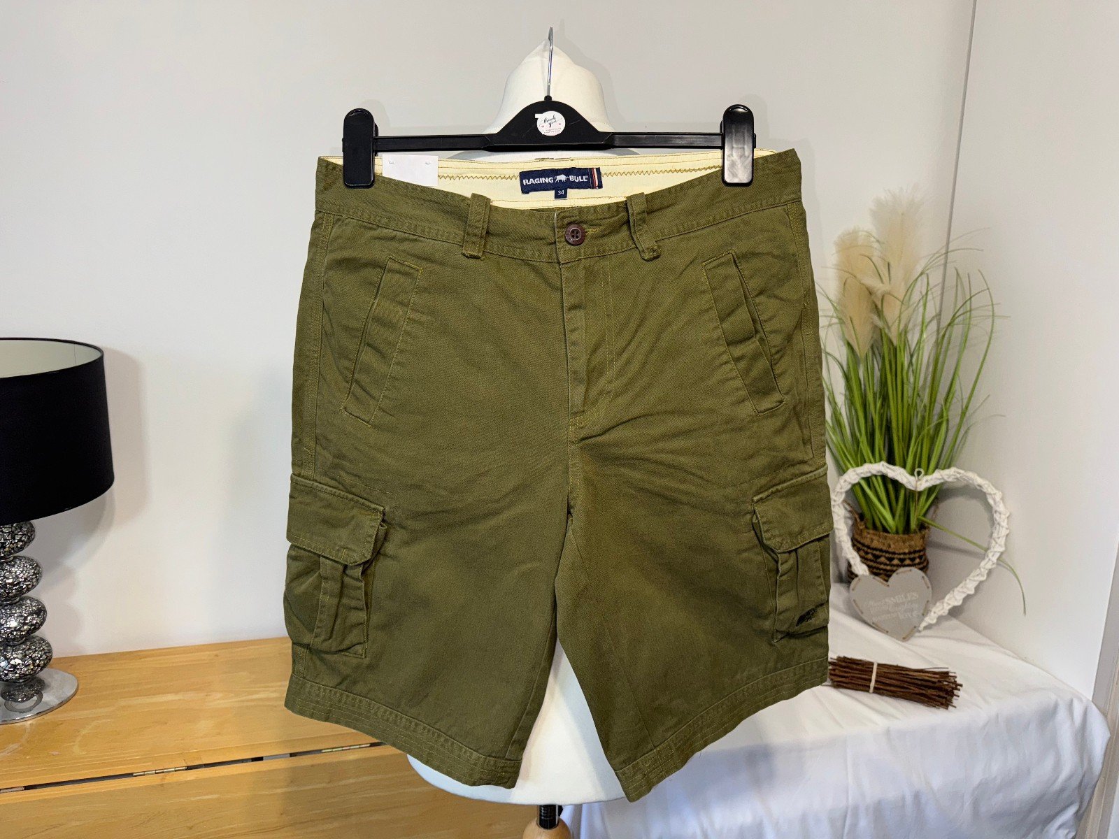 The RAGING BULL Khaki Vintage Wash Cargo Shorts in size W34 are a stylish and versatile addition to any man’s wardrobe. Made from cotton, these regular fit shorts feature a flat front design with a zip button closure. The 11.5-inch inside leg and cargo pocket add practicality to the casual style, making them perfect for everyday wear. Machine washable for easy care, these shorts from the reputable brand RAGING BULL are a timeless choice for those looking for a classic and comfortable option in men’s clothing.REF4