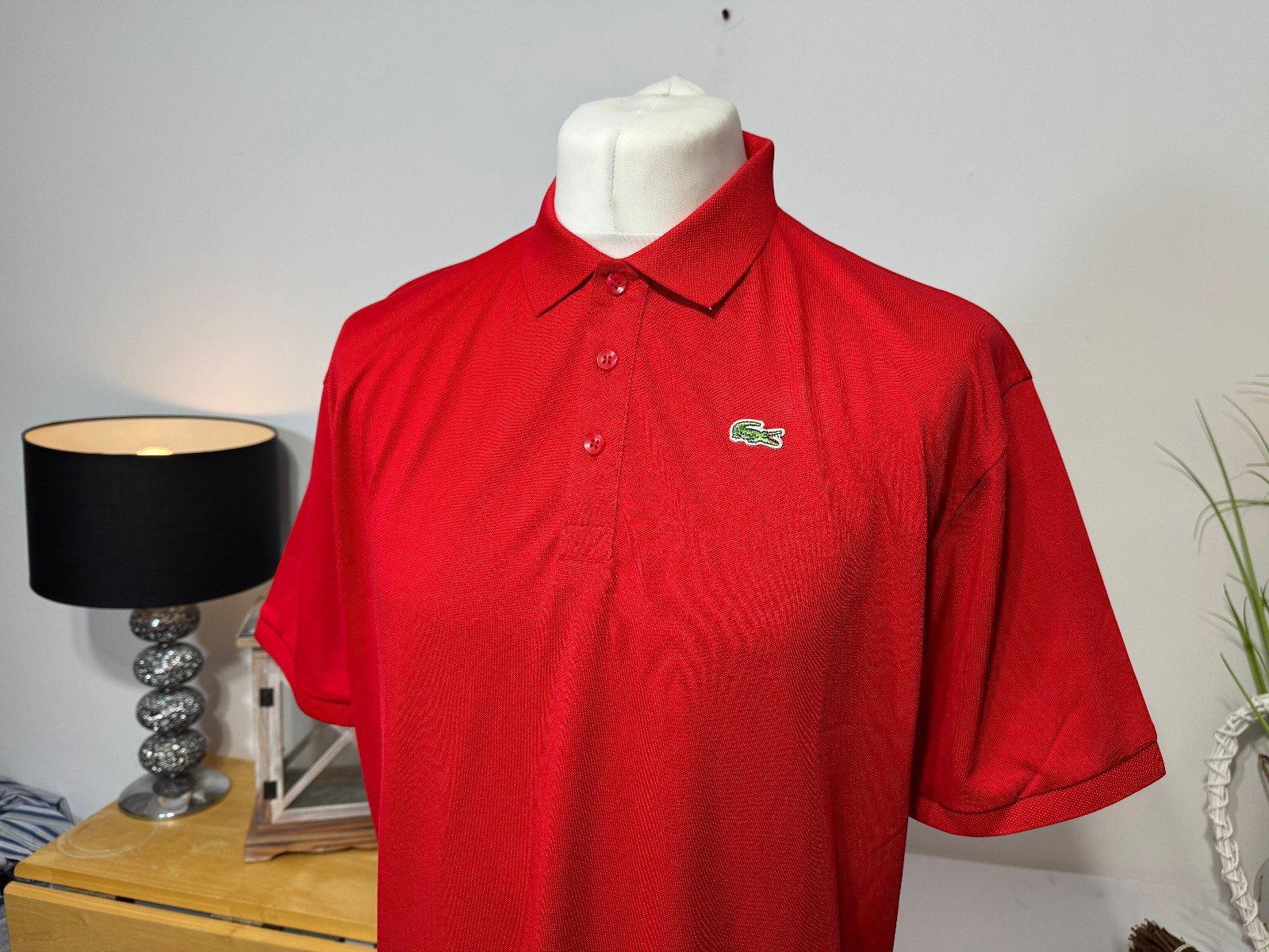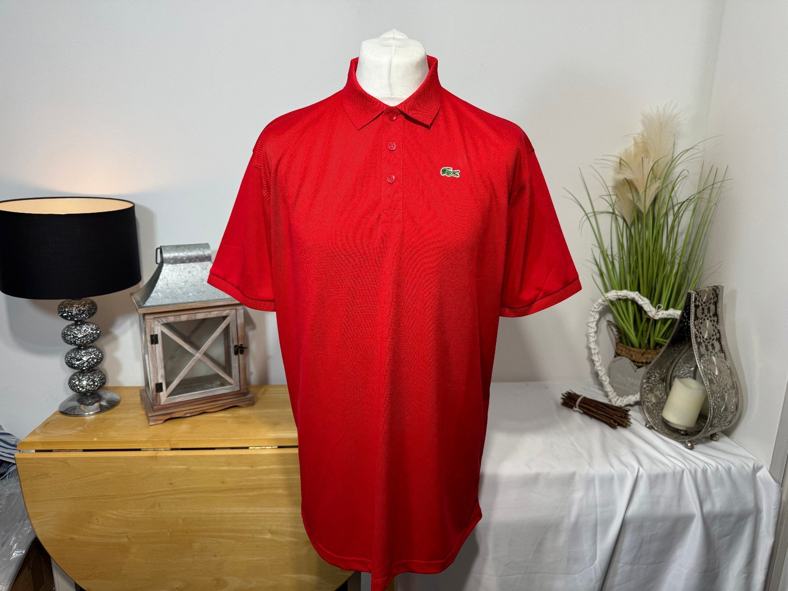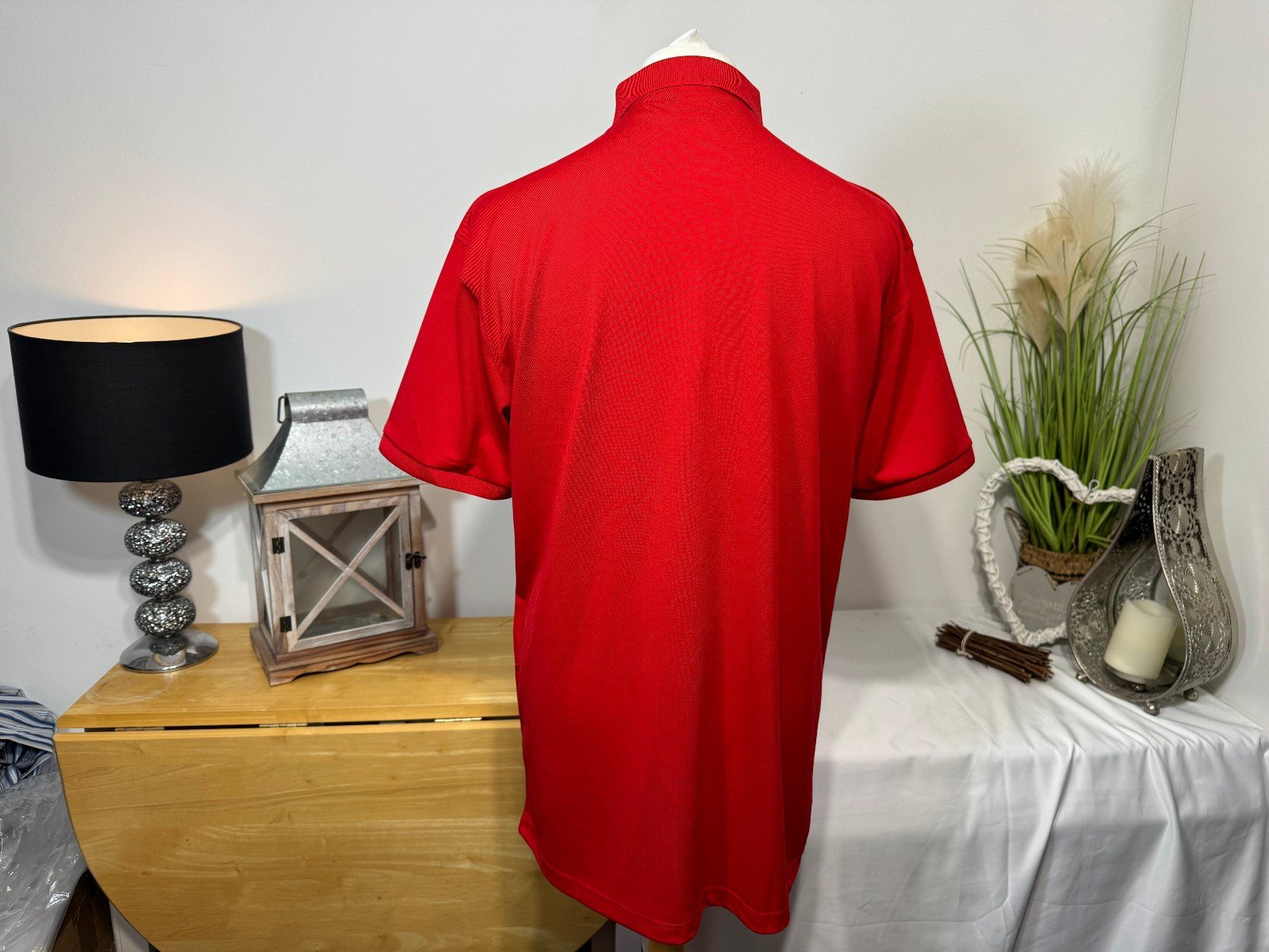 PIT-PIT 25IN. LENGTH 31INThis Red Embroidered Logo Pique Knit Polo Shirt in size 4XL is a stylish and comfortable choice for men looking for a regular fit polo shirt. The solid red colour, collared neckline, short sleeves, and button closure give it a classic and versatile look. Made from jersey fabric, this polo shirt is machine washable for easy care. Perfect for any casual or semi-formal occasion, this polo shirt combines quality craftsmanship with a bold design that is sure to make a statement.R9