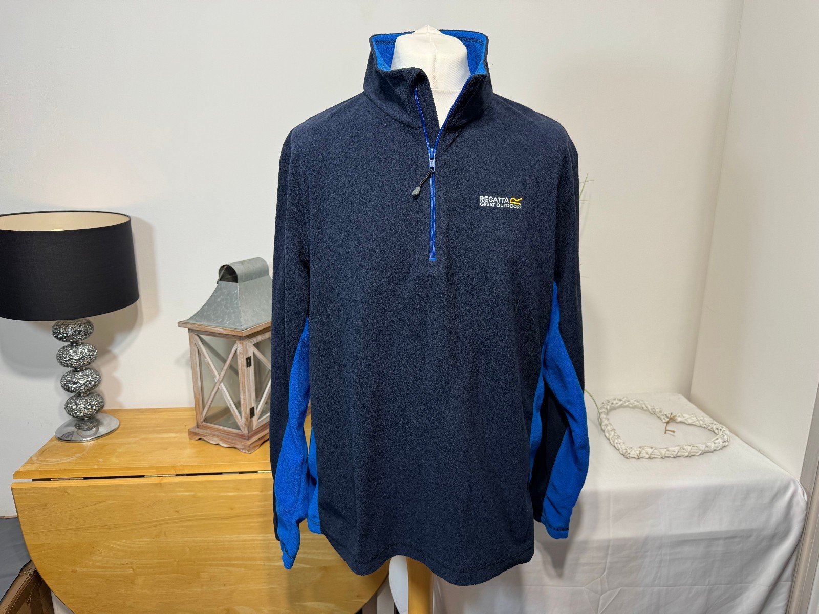 PIT-PIT 27IN LENGTH 30INThe Regatta Navy 1/4 Zip Funnel Neck Fleece in size 2XL is a stylish and practical addition to any man’s winter wardrobe. Made from polyester fleece, it provides warmth and comfort while being machine washable for easy care. The 1/4 zip feature adds a modern touch to this pullover top, perfect for casual occasions. With a regular fit and classic blue colour, this fleece top from Regatta is a versatile and essential piece for the colder months.R8