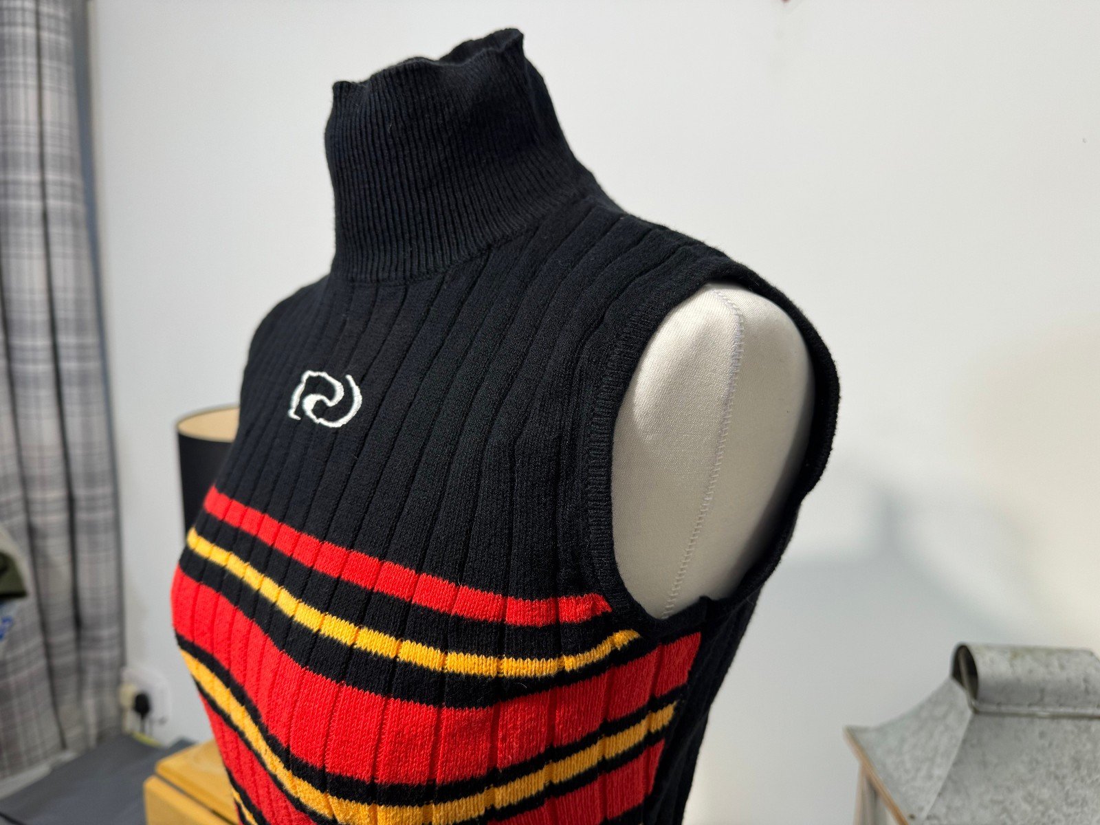 Resume Black Embossed Logo Ribbed High Neck Tank Top Size S