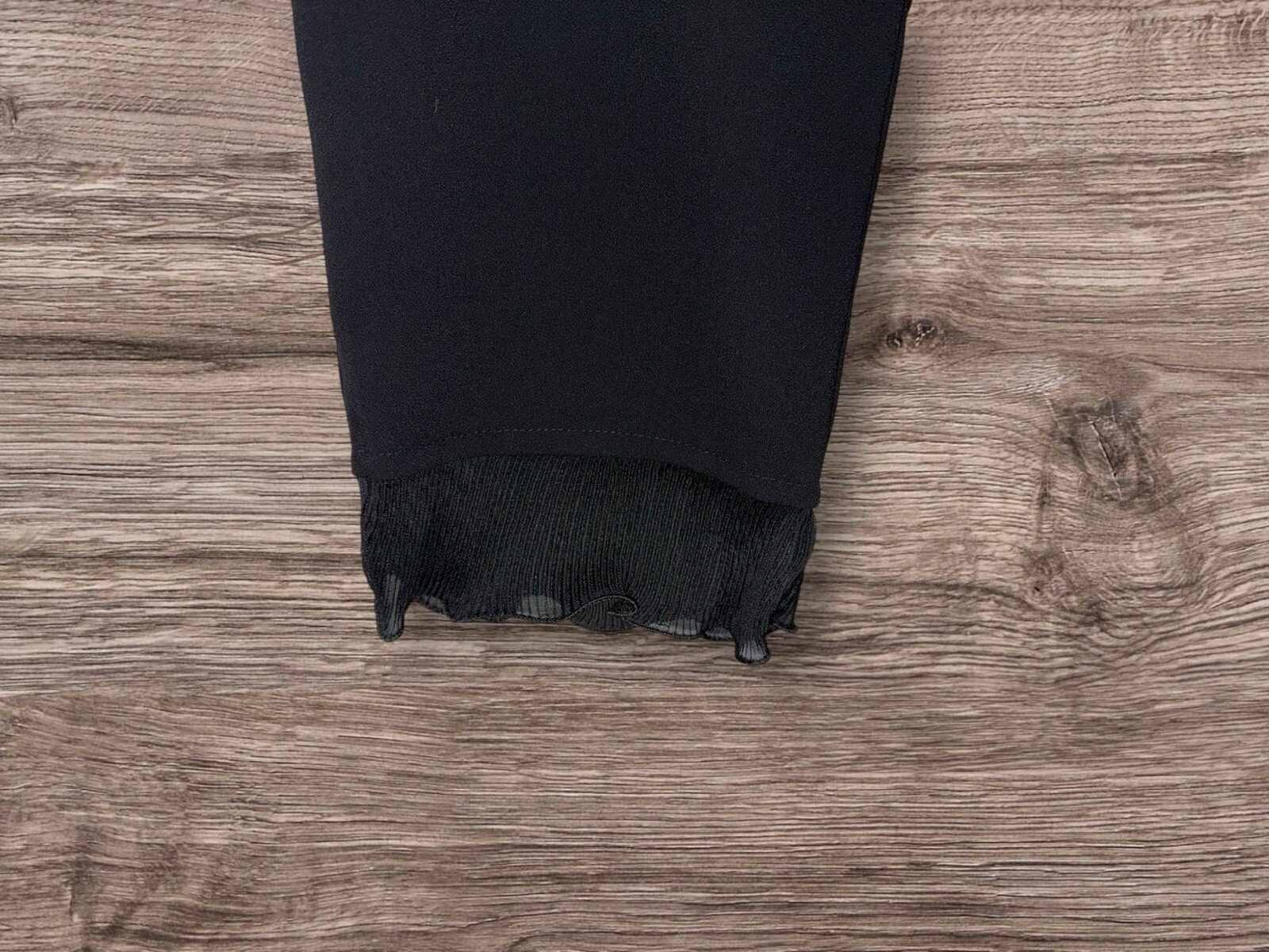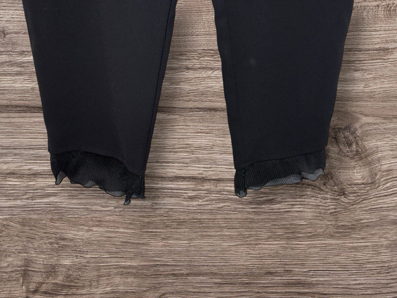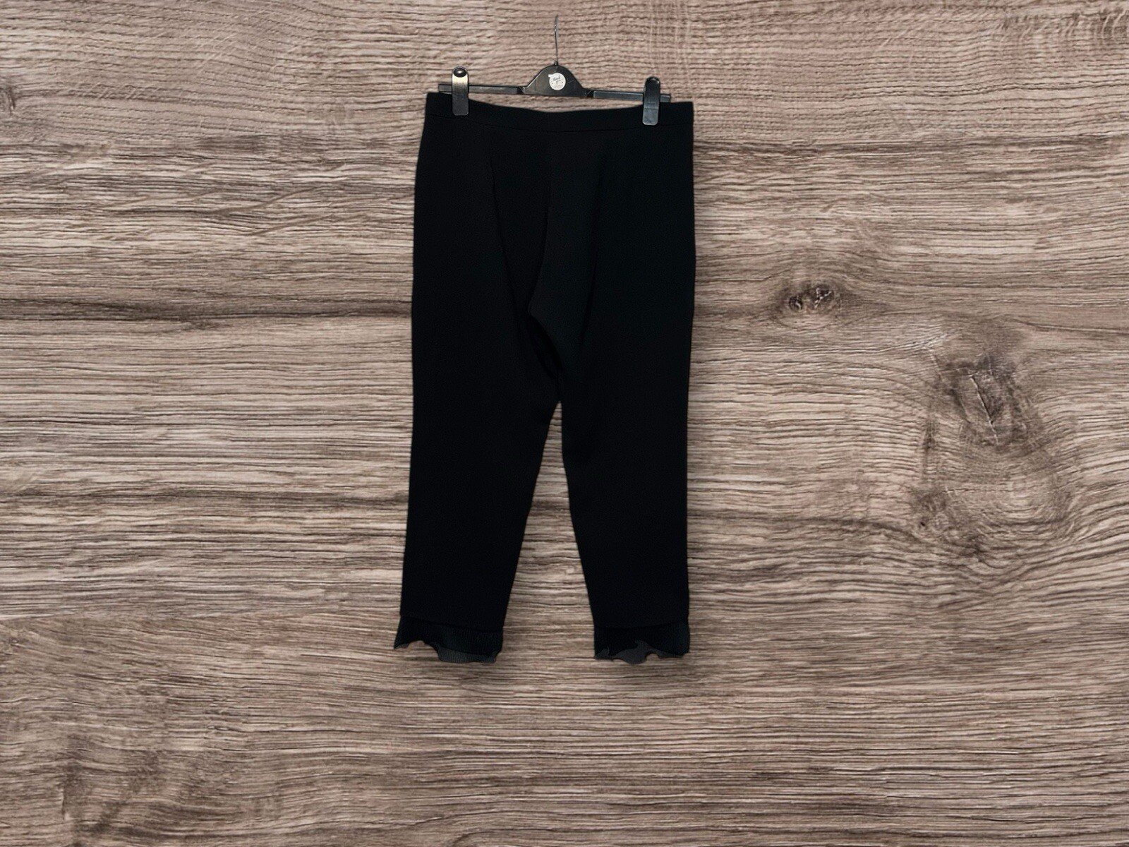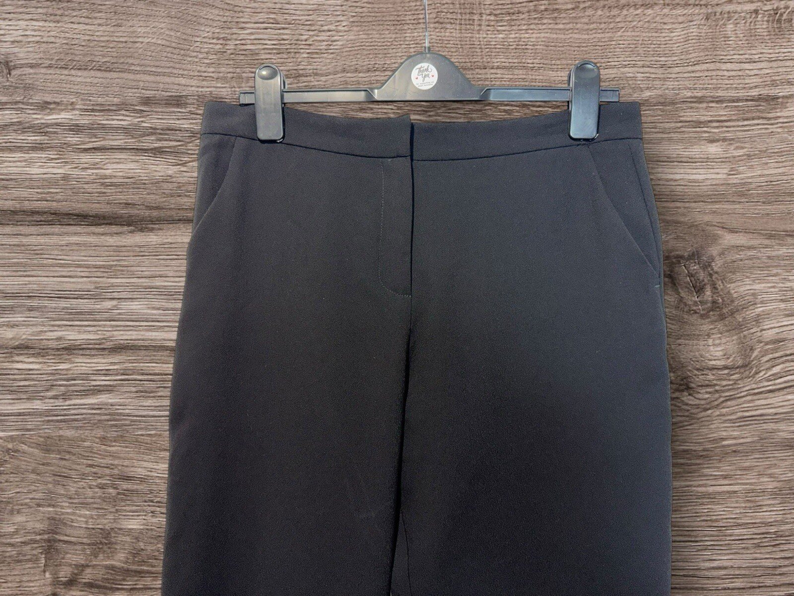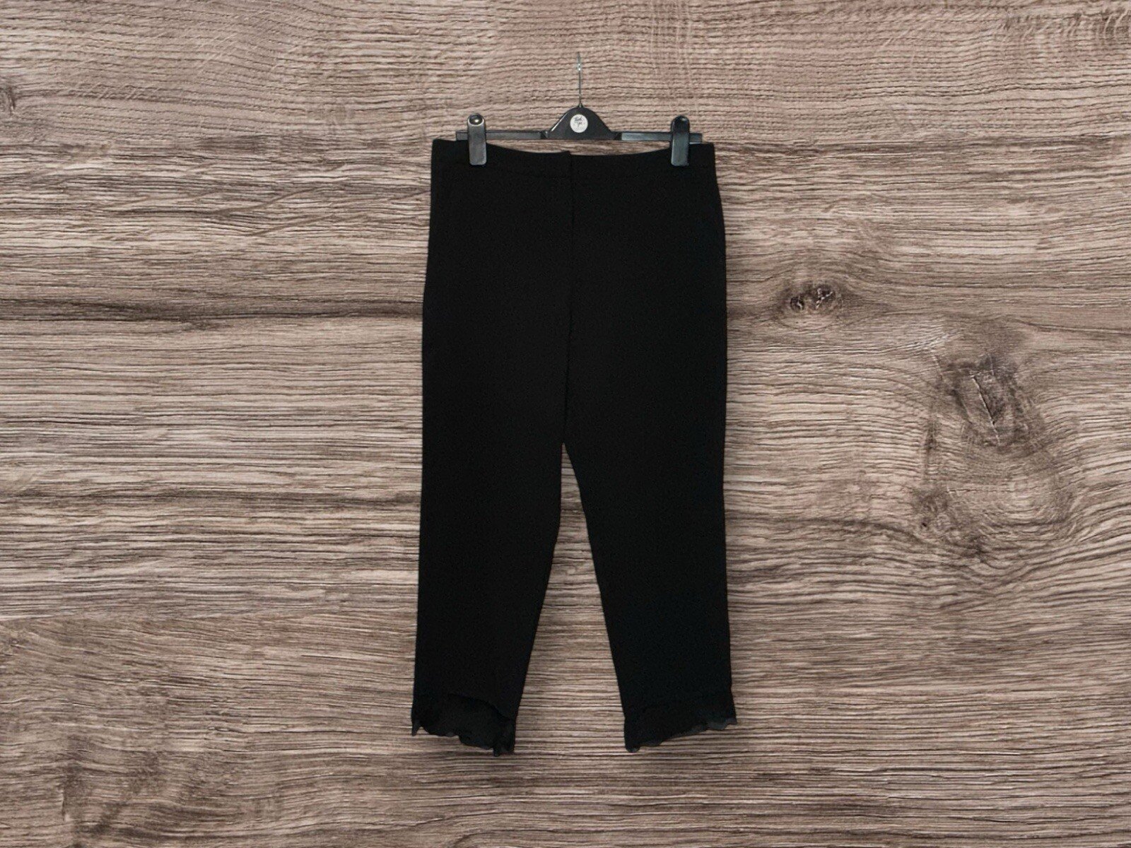 First photo shows with a blouse, only the trousers are for sale on this listing……..Elevate your wardrobe with the River Island Black Crop Trousers, a perfect blend of style and comfort for the modern woman. The trousers come in a versatile size 12 and are designed to fit beautifully into any regular wardrobe. With their chic cropped length, they're ideal for both casual outings and more sophisticated events. The sheer frill hem detail adds a touch of elegance and a playful edge to these trousers, making them a standout piece. Crafted from quality polyester material, they promise durability and ease of care. The classic black hue ensures they can be paired effortlessly with a range of tops and shoes, enhancing your ensemble with minimal effort. Waist 34in. Inside leg 26in. Excellent condition. Whilst every care is taken to ensure the garments are checked to a high standard and most are in As New Condition. However they are used garments and therefore may show some small signs of wear