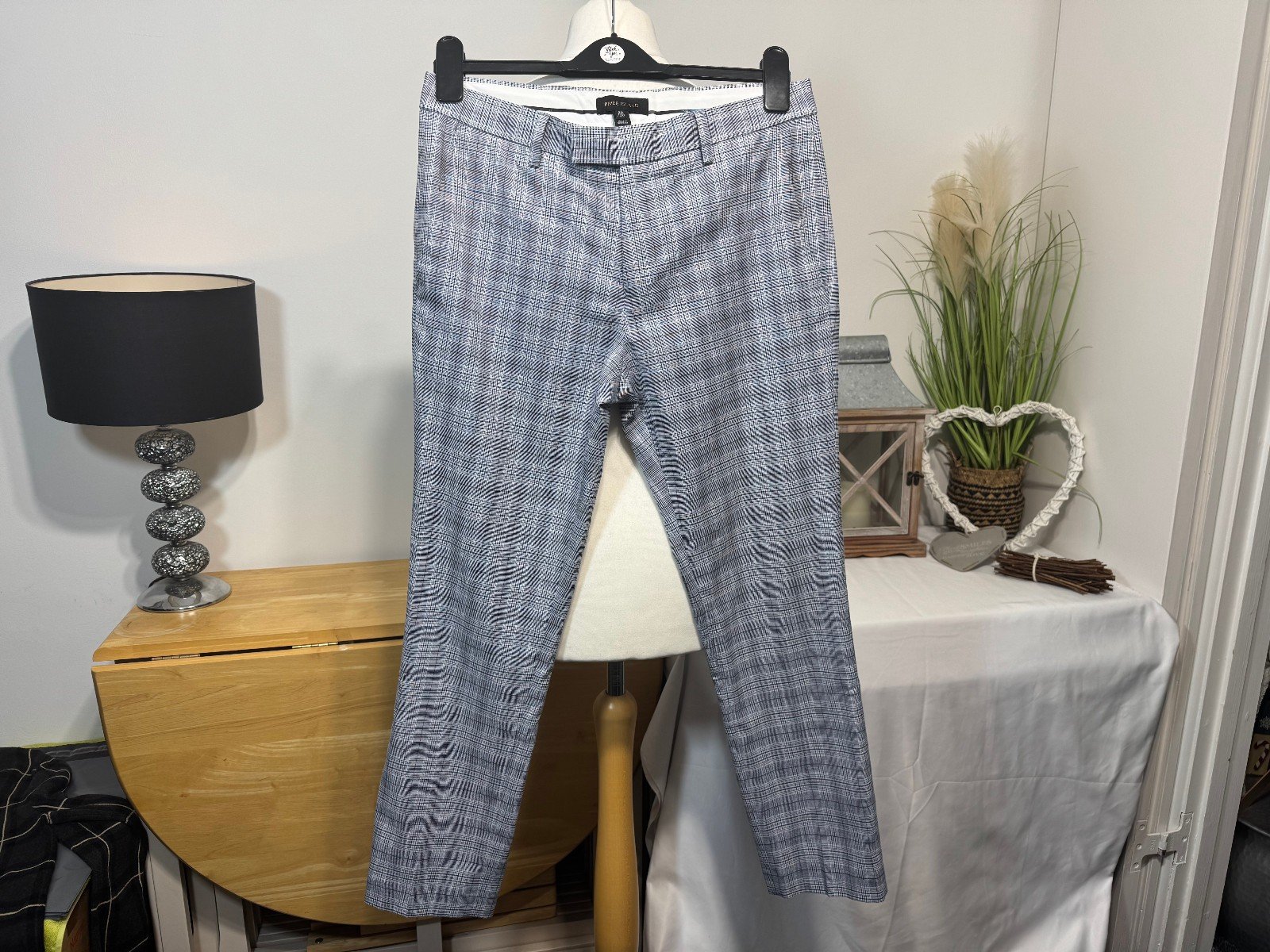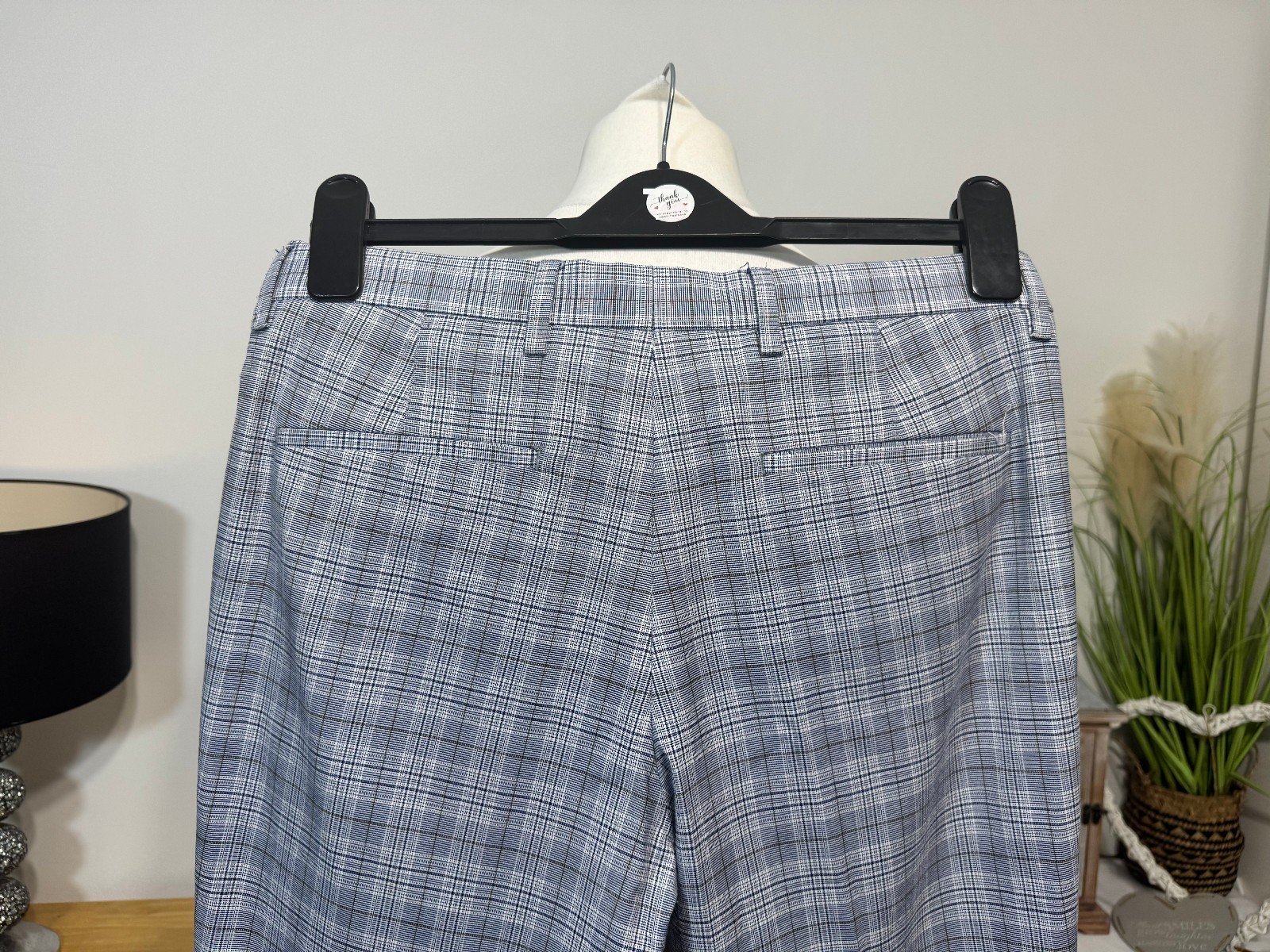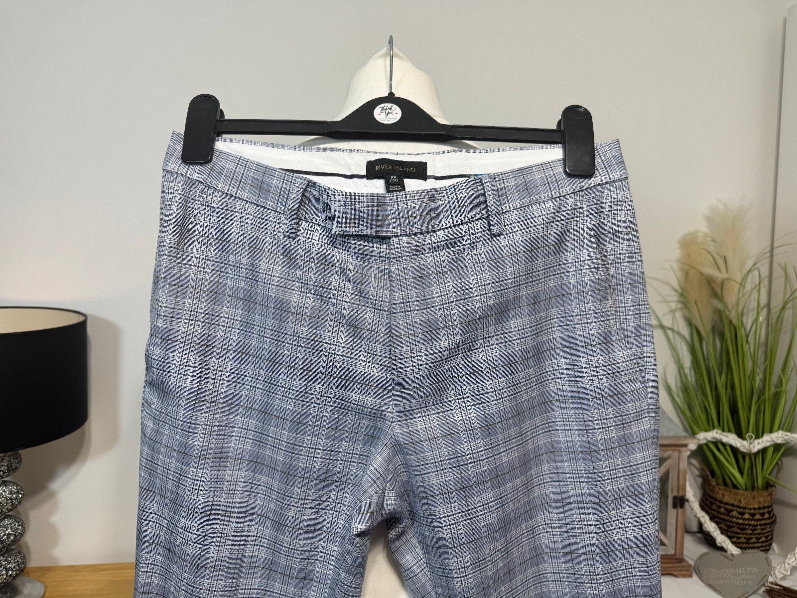 The River Island Check Chinos in W30 L28 are stylish men’s trousers in a classic chino style. Featuring a zip closure and a flat front, these trousers come in a smart blue check pattern. Made from machine washable fabric, they offer a tapered leg for a modern look. Perfect for everyday wear, these trousers are a versatile addition to any man’s wardrobe, showcasing the quality and style of the River Island brand.