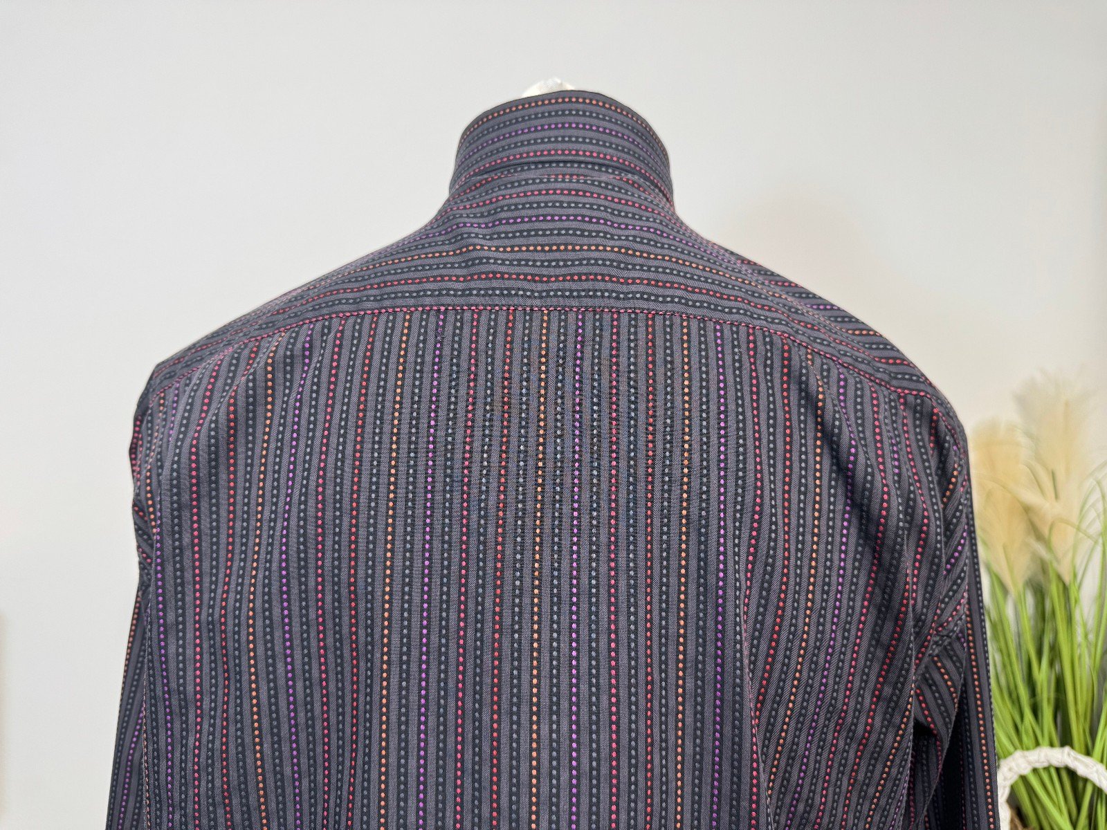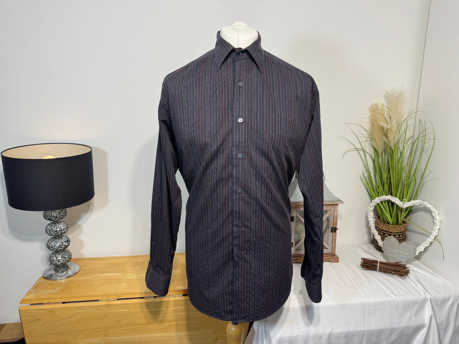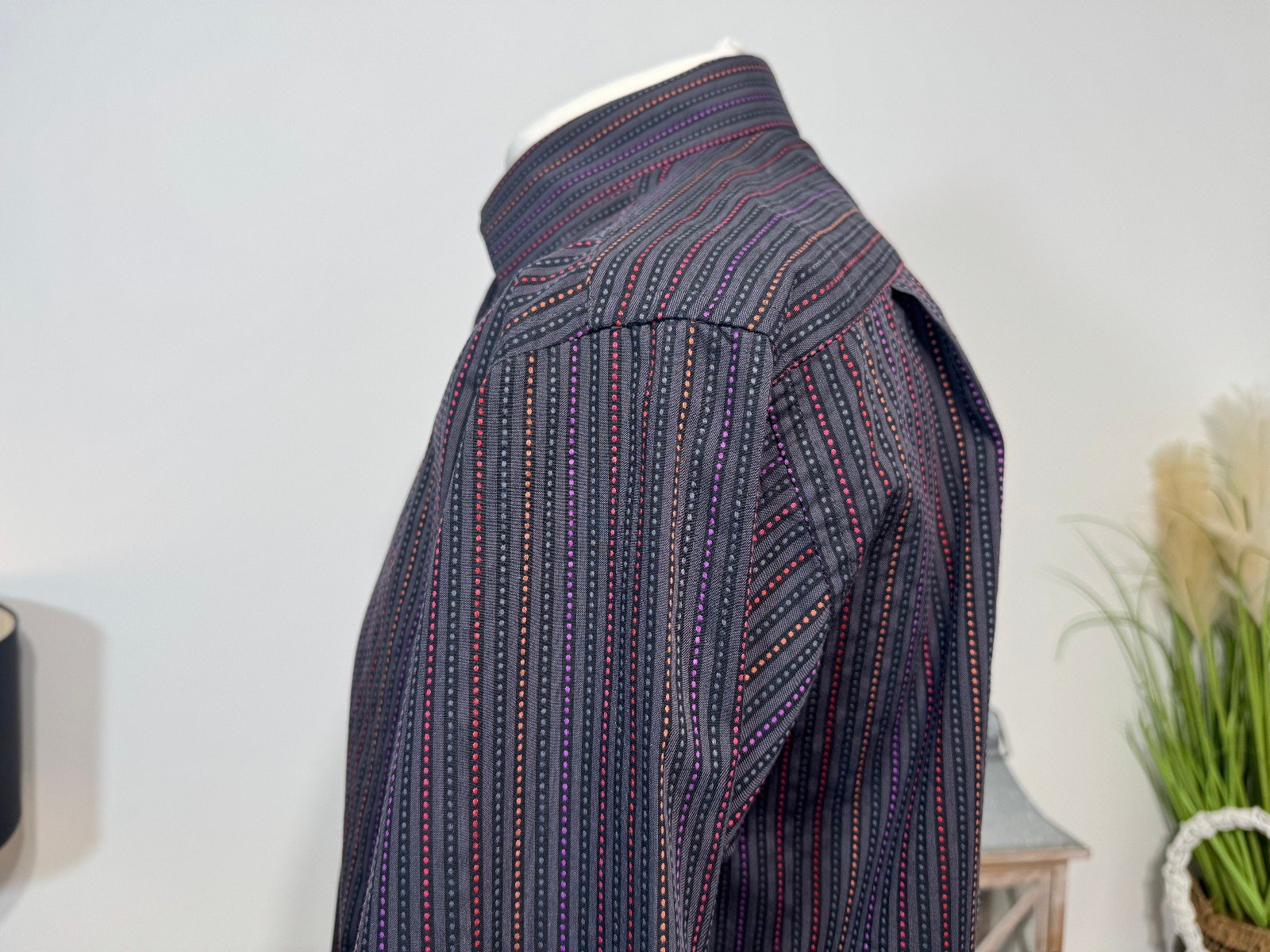 Pit-Pit 25in. Length 31inThe Rocola Charcoal Stripe Long Sleeve Shirt in size XL features a stylish striped pattern in a versatile charcoal colour. Made from a comfortable cotton-polyester blend, this button-up shirt is perfect for casual occasions with its collared neckline and regular fit. Easy to care for with machine washable instructions, this shirt from the popular brand Rocola is a great addition to any man’s wardrobe. Ideal for everyday wear, this shirt combines style and comfort effortlessly.ref3