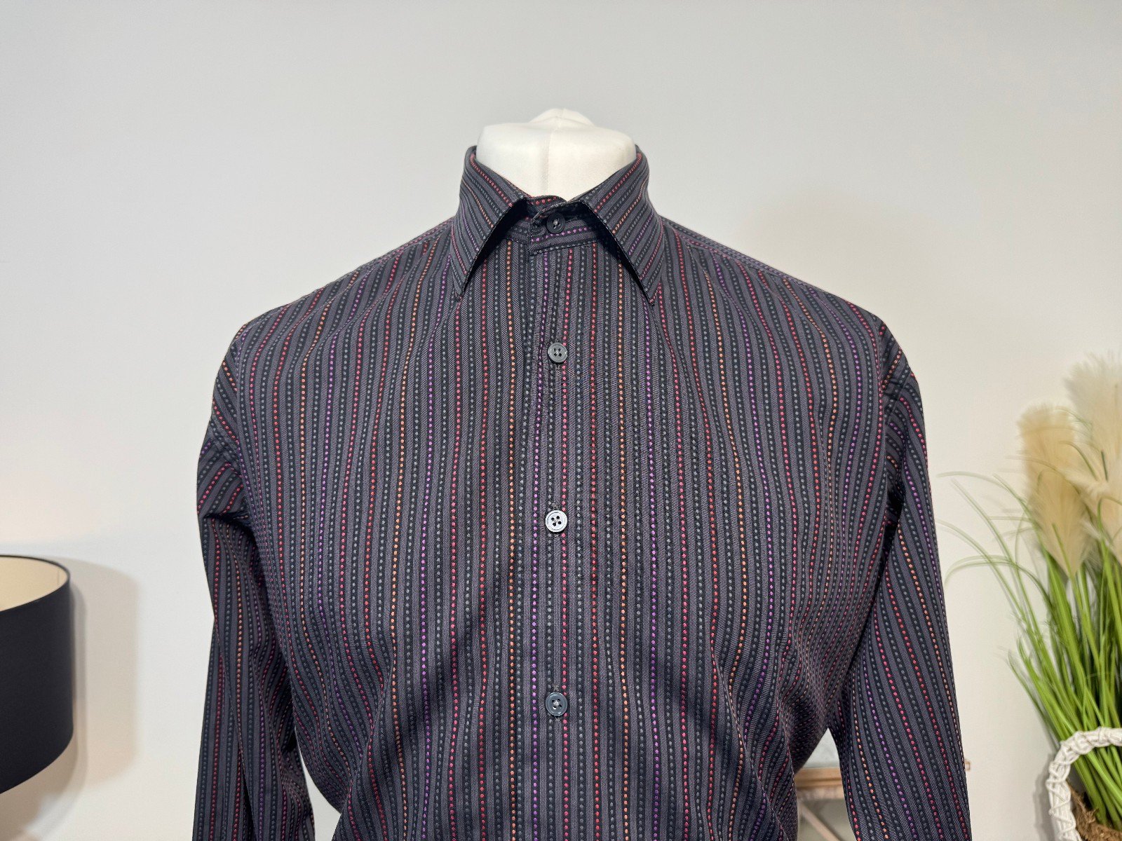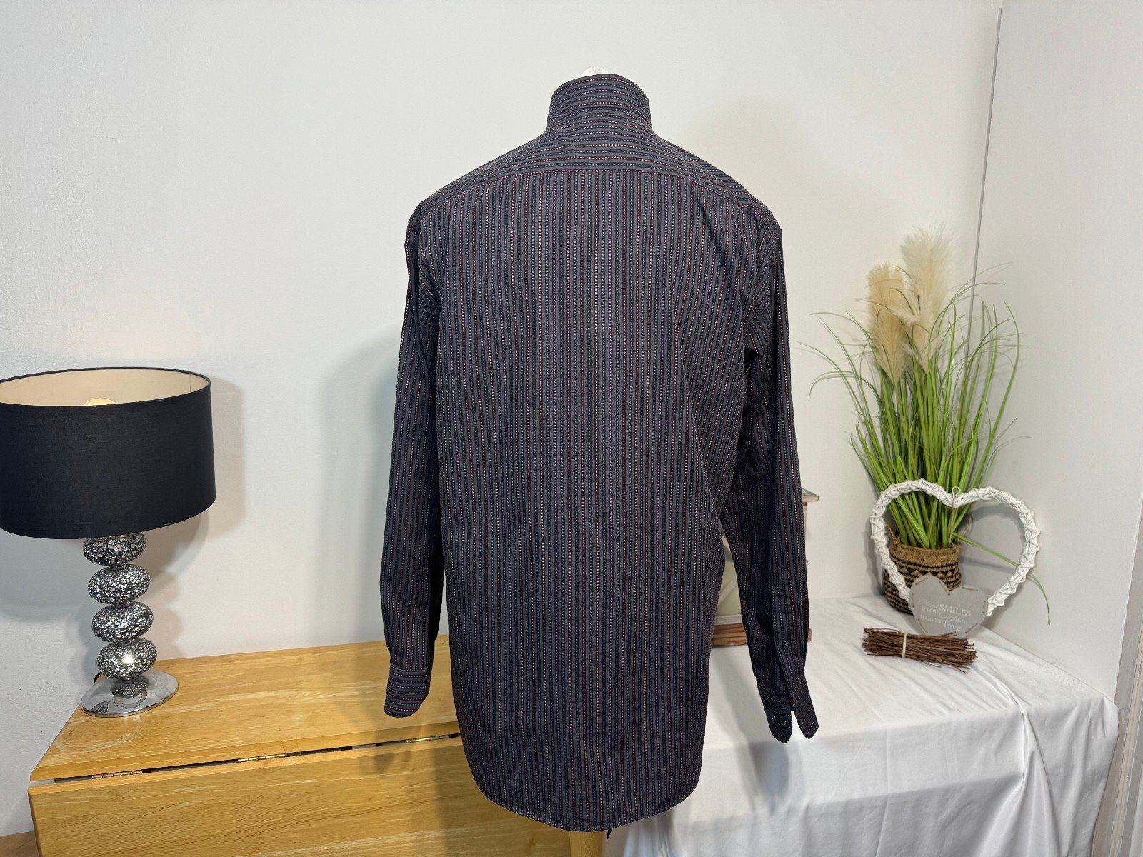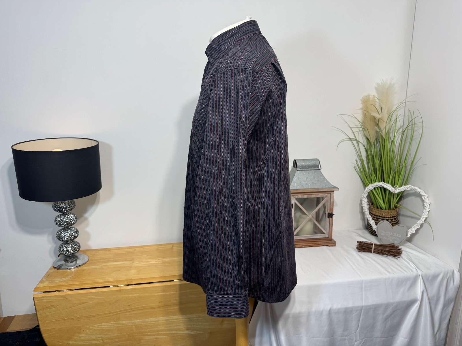 Pit-Pit 25in. Length 31inThe Rocola Charcoal Stripe Long Sleeve Shirt in size XL features a stylish striped pattern in a versatile charcoal colour. Made from a comfortable cotton-polyester blend, this button-up shirt is perfect for casual occasions with its collared neckline and regular fit. Easy to care for with machine washable instructions, this shirt from the popular brand Rocola is a great addition to any man’s wardrobe. Ideal for everyday wear, this shirt combines style and comfort effortlessly.ref3