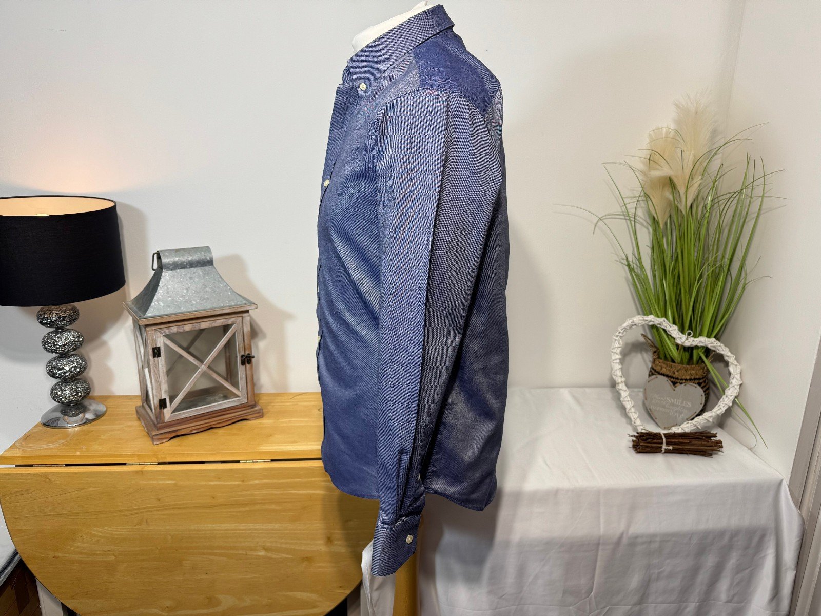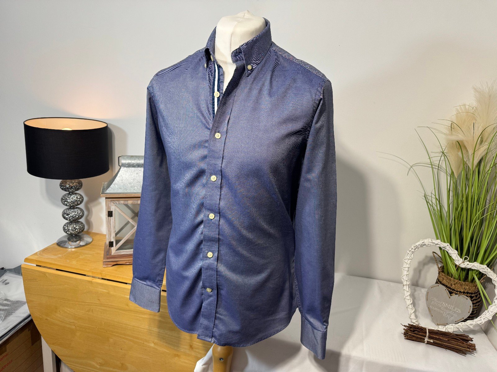 PIT-PIT 22IN. LENGTH 30INThe Saville Row Blue Slim Fit Woven Long Sleeve Shirt in size M is a stylish and sophisticated dress shirt designed for men. Made from cotton, this shirt features a solid blue colour with a collared neckline and button closure. The slim fit and slimming features make it a flattering and modern choice for formal occasions. The long sleeves and button accents add a touch of elegance to this high-quality garment from the respected brand Savile Row. Easy to care for with machine washable instructions, this shirt is a must-have for any man’s wardrobe.R9