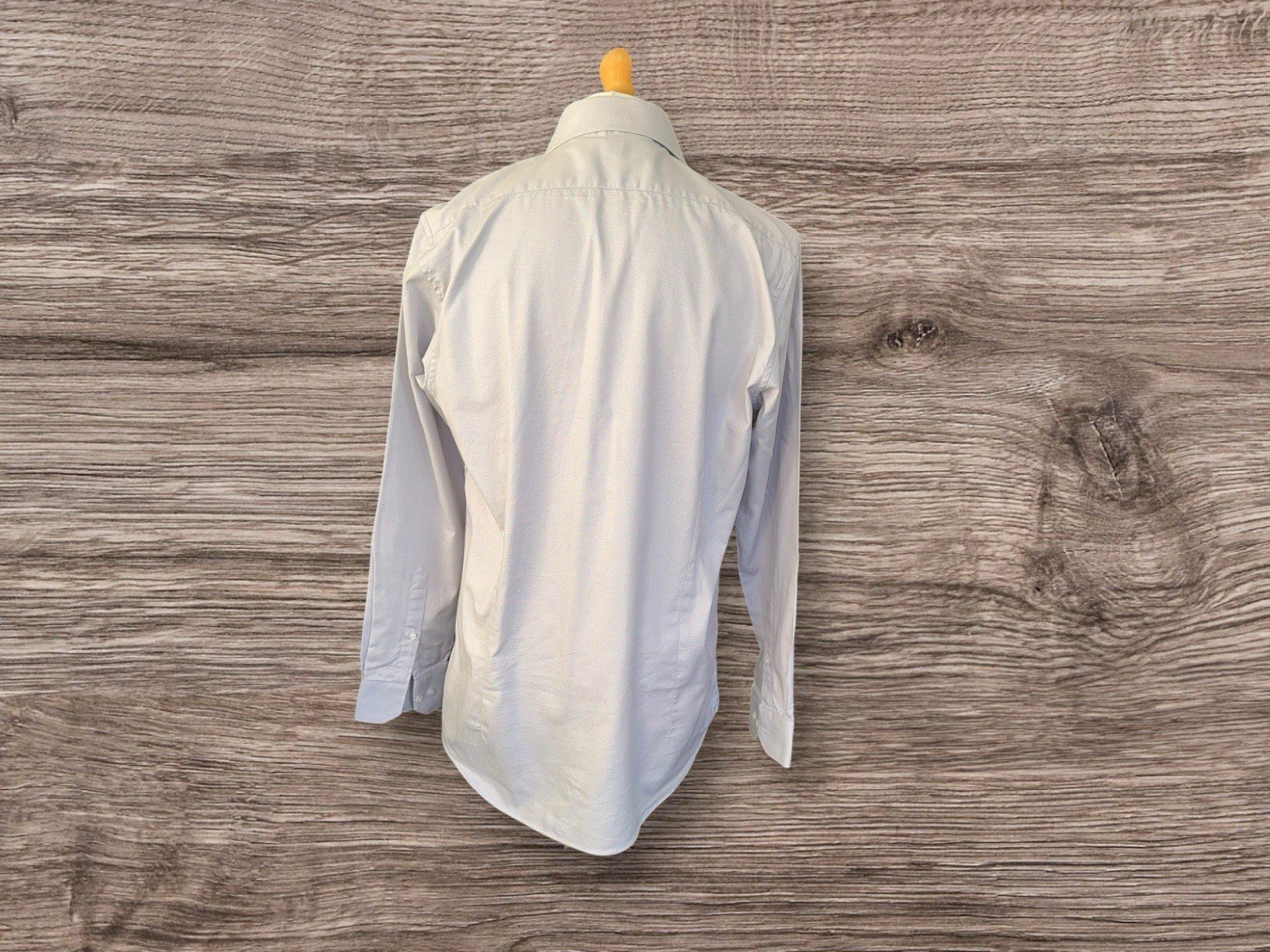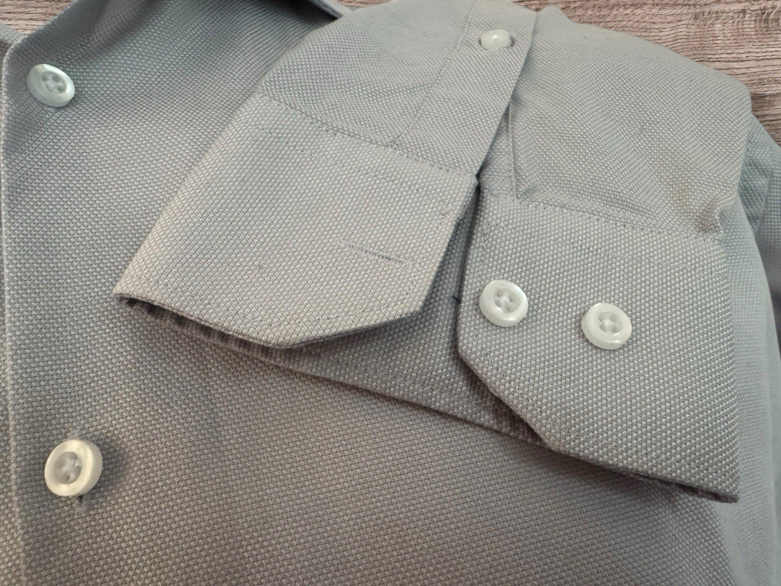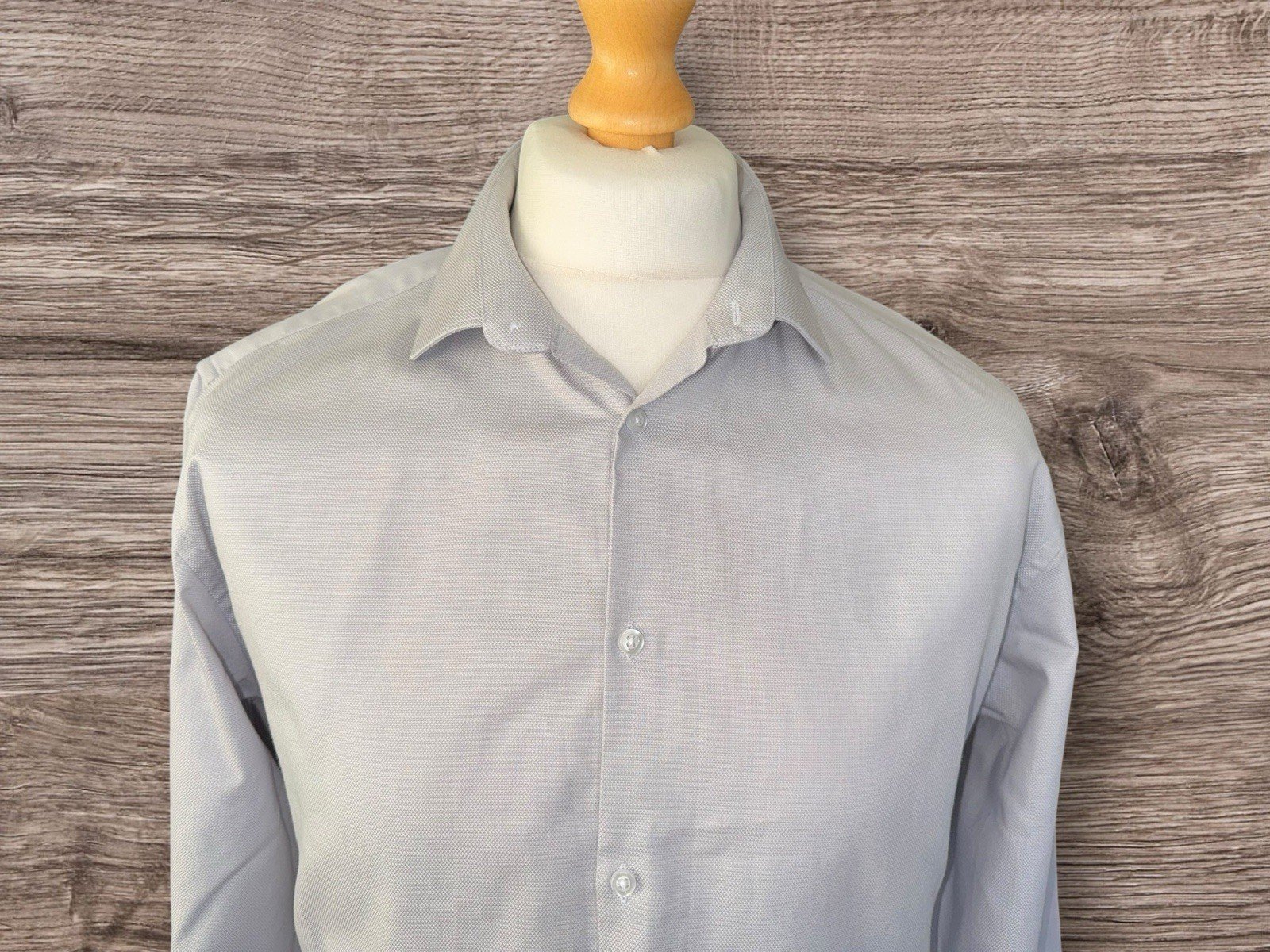 Silver Grey Woven Cotton Regular Fit Shirt Tailored Back Long Sleeve Neck 16.5