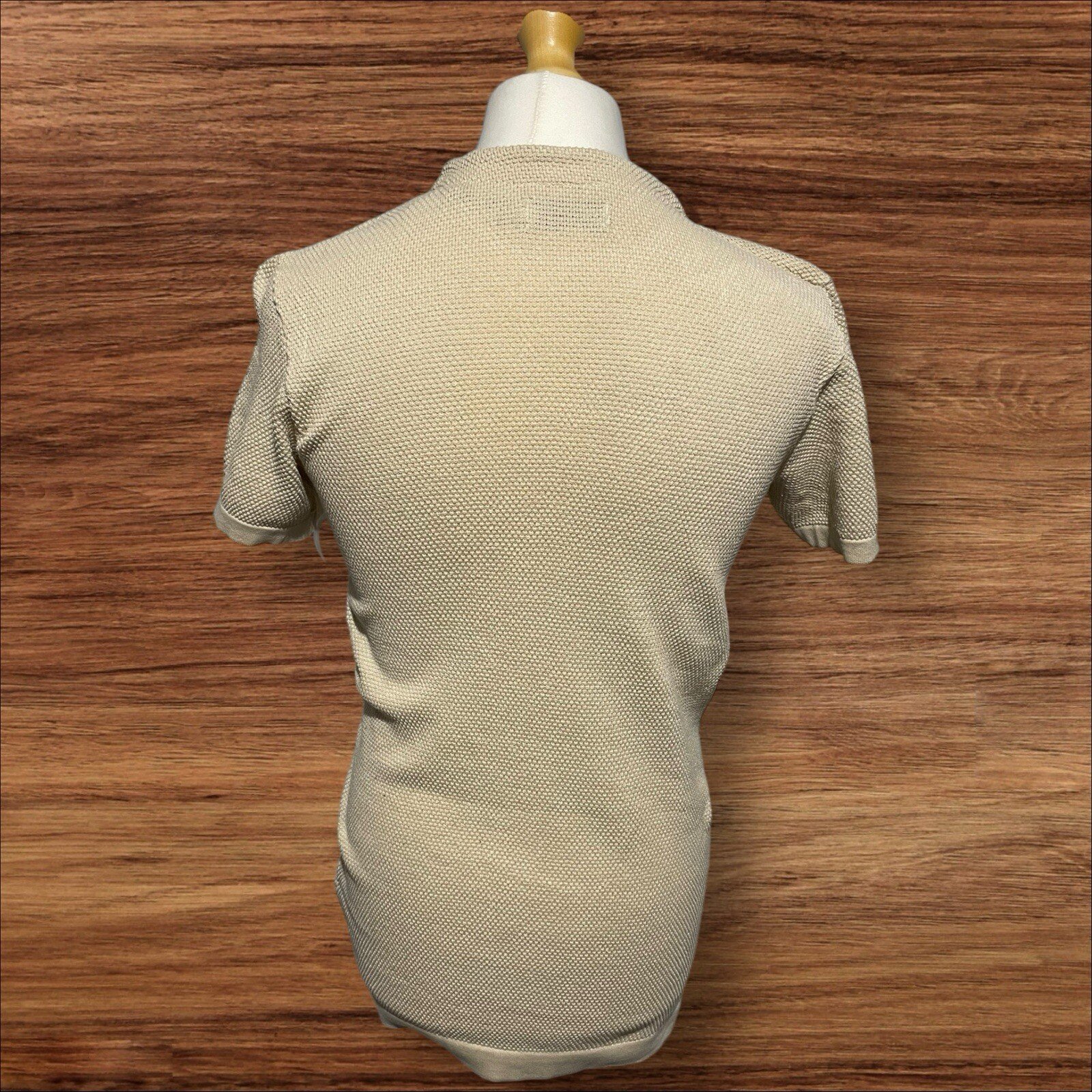 Stay stylish and comfortable with this SOLID beige waffle-knit jumper. The unisex design is perfect for both men and women, while the cuffed sleeves and round neckline add a touch of sophistication. Made from 100% cotton, this pullover is soft and breathable, making it ideal for everyday wear. The short sleeves and waffle-knit style are perfect for those colder days, and the beige colour complements any outfit. With a size of M, this jumper is perfect for regular-sized individuals. Add this jumper to your wardrobe and enjoy its comfort and style. Pit to pit 19in From a smoke and pet free home