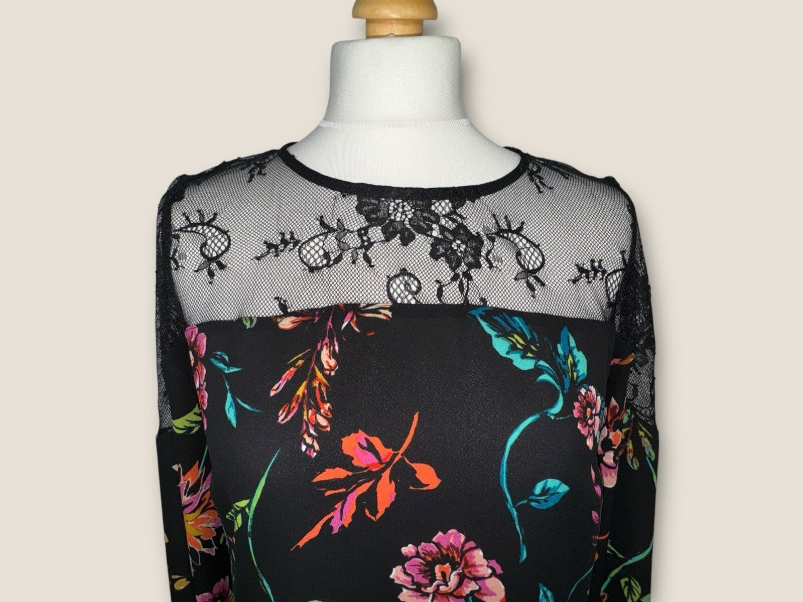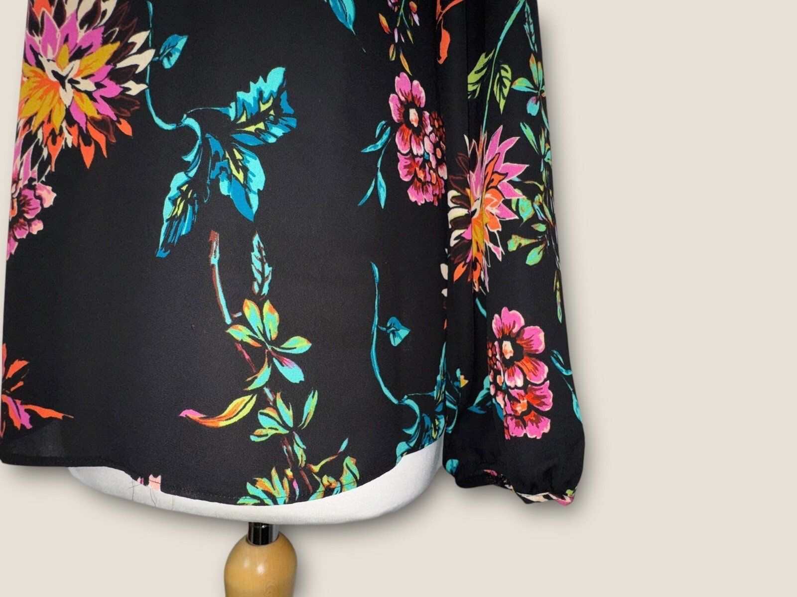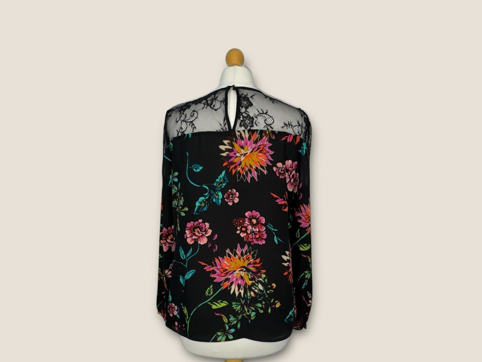 Excellent condition. Lovely vibrant colours.clace yolk & across shoulders. Cuffed sleeves with gold coloured buttons. Side splits. Length 24 in