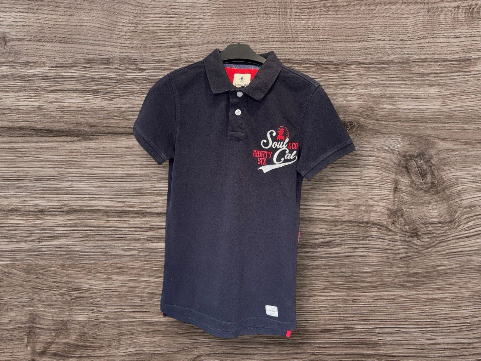 Pit-pit 17in. Length 27.5inElevate your casual wardrobe with this stylish Soulcal &Co polo shirt. The navy blue colour and graphic design make it perfect for a day out with friends or a relaxed day at work. Made of a comfortable blend of polyester and cotton, this shirt features a regular fit, short sleeves and a collared neckline. Ideal for men who wear size XS, this polo shirt is a must-have for any fashion-conscious individual. Whether you're pairing it with jeans or trousers, this shirt is sure to make a statement. So why wait? Add this to your collection today!Please make sure you have checked the measurements and read the description before purchasing 😉
