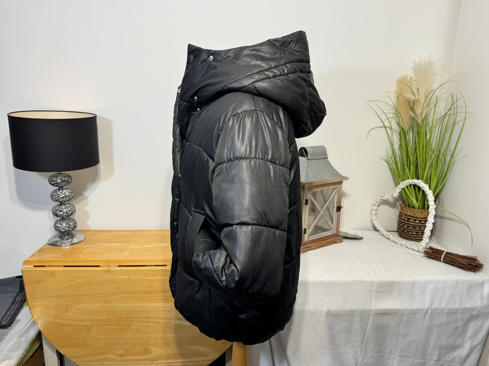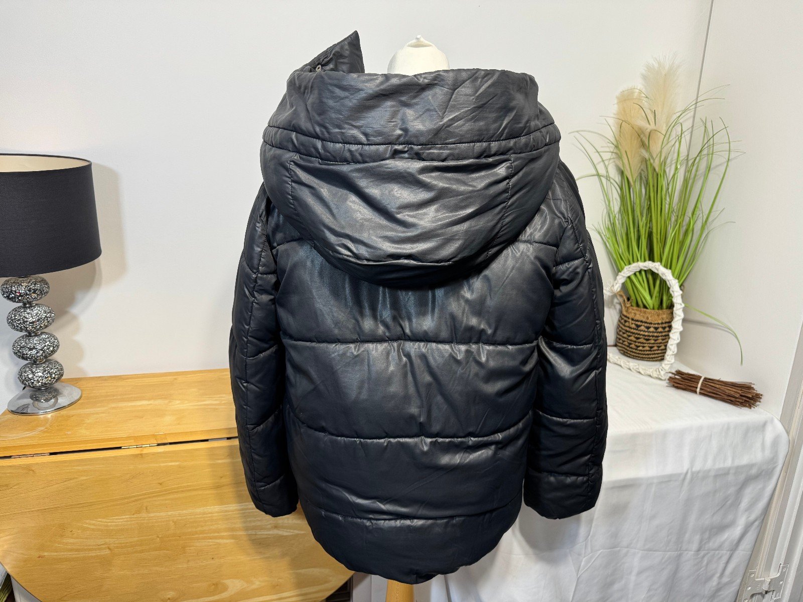 Steve Madden Black Puffer Jacket Hood Pockets Zip/popper Close Size L