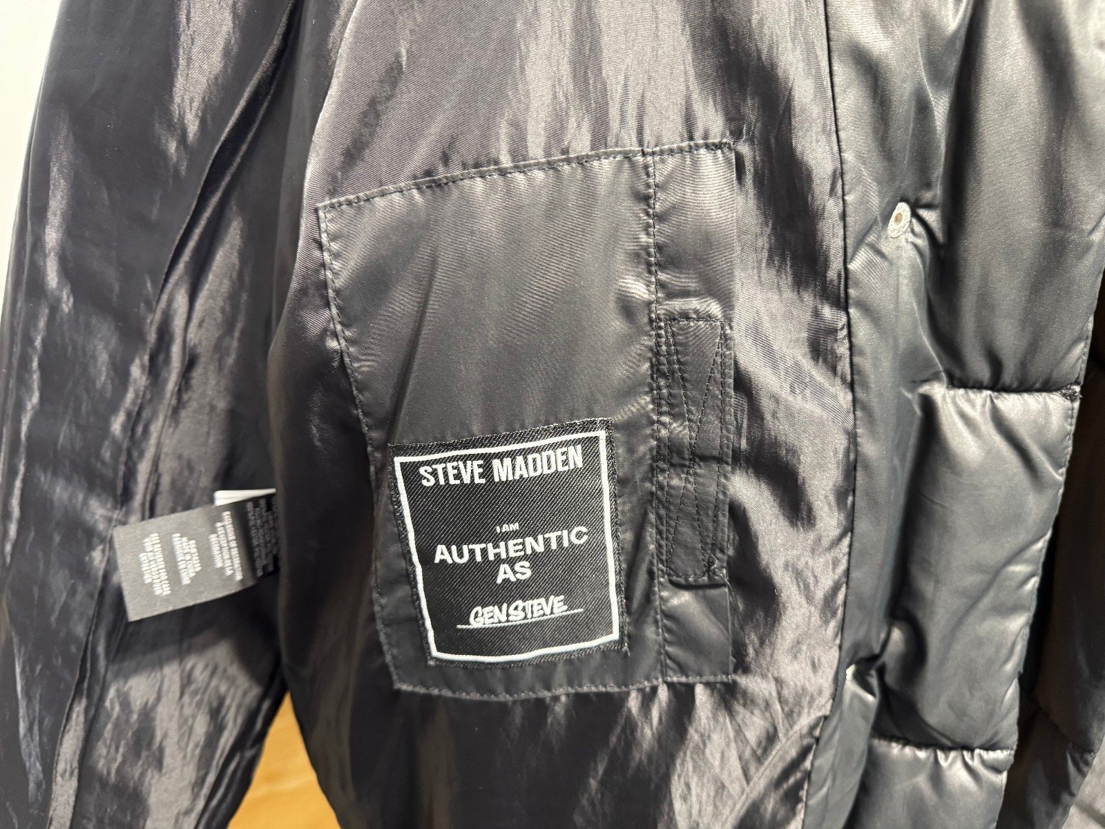 ‼️Please read the measurements before purchasing ‼️ Pit-pit 24in. Length 29inStay stylish and warm in the Steve Madden Black Puffer Jacket. Made from durable polyester with a soft polyester lining, this jacket features a zip/popper closure and a hood for added protection. The jacket has a classic puffer style with multiple pockets for convenience, perfect for the winter season. With a sleek black colour and the trusted Steve Madden brand, this jacket is a must-have for any fashion-forward woman.