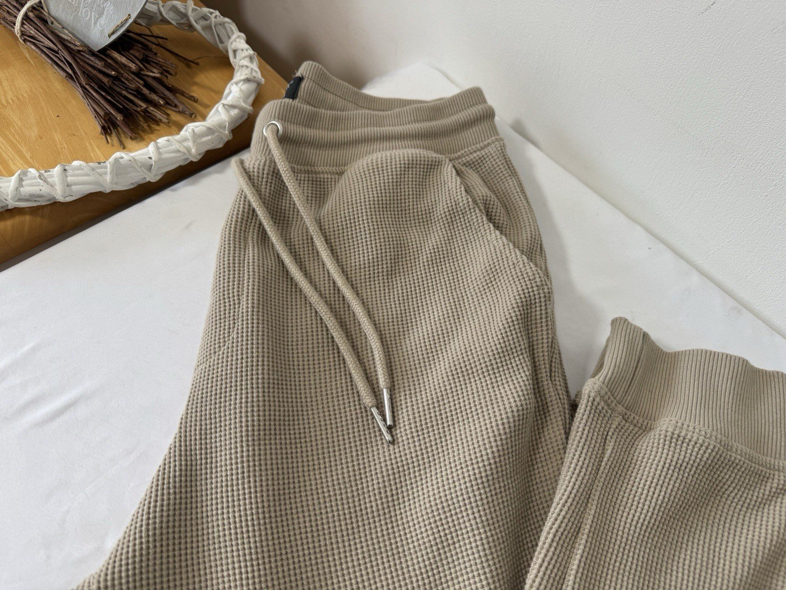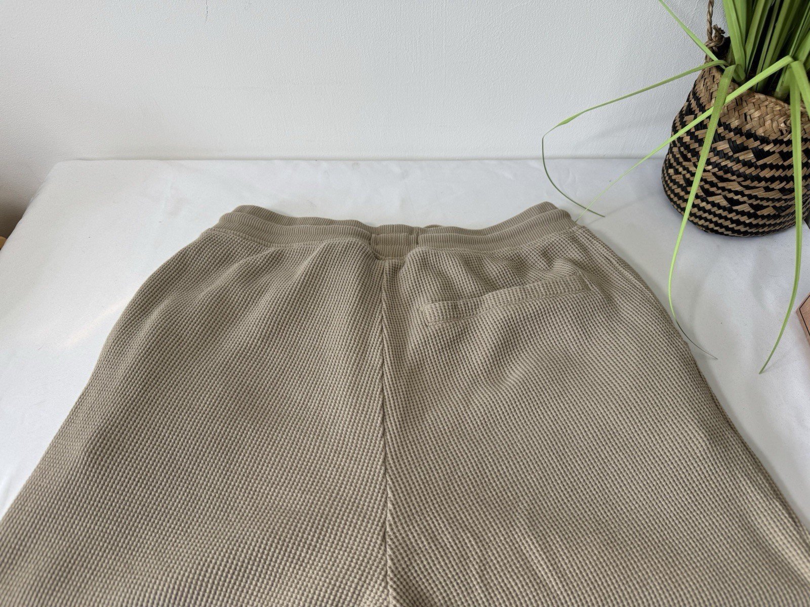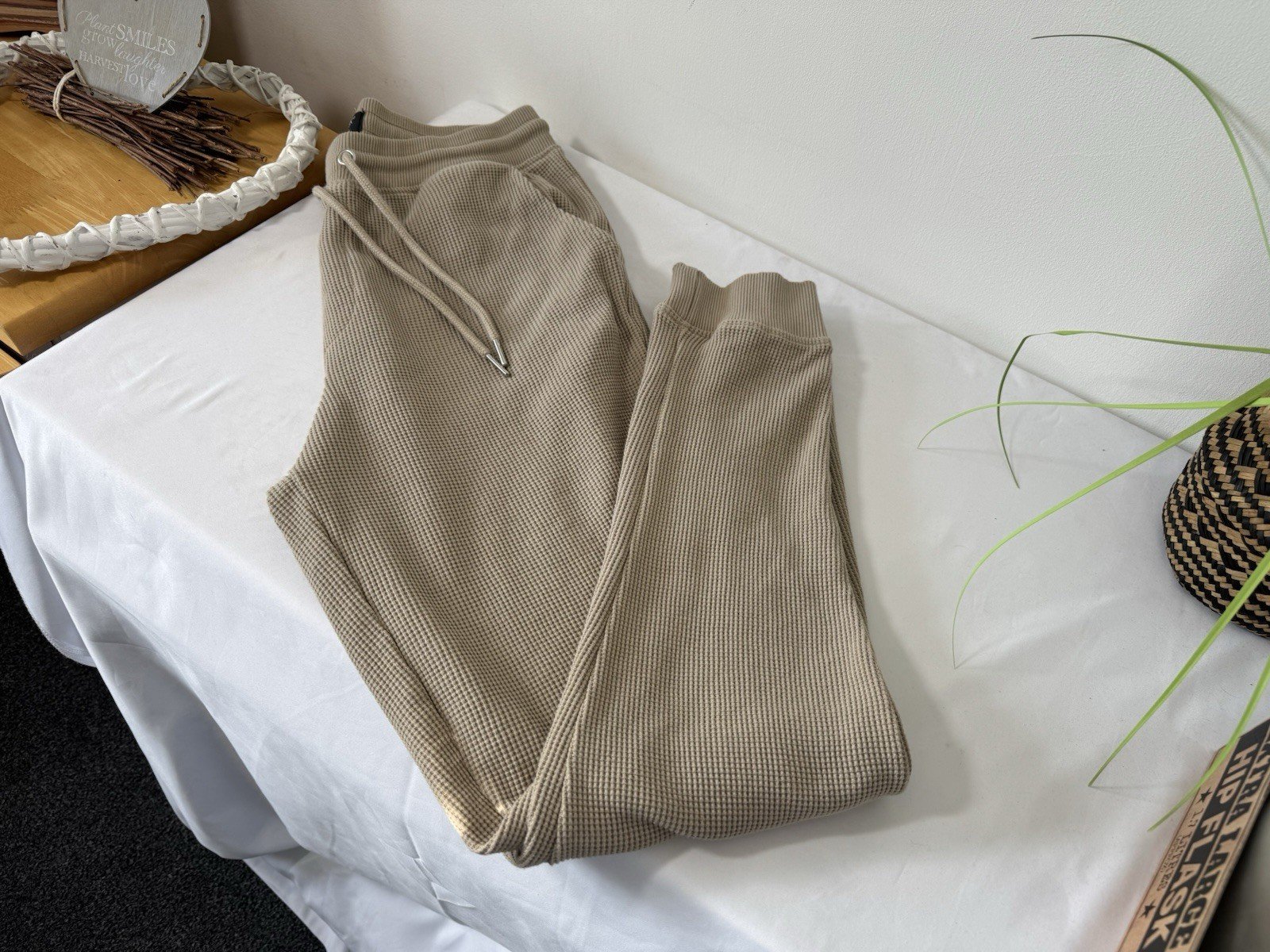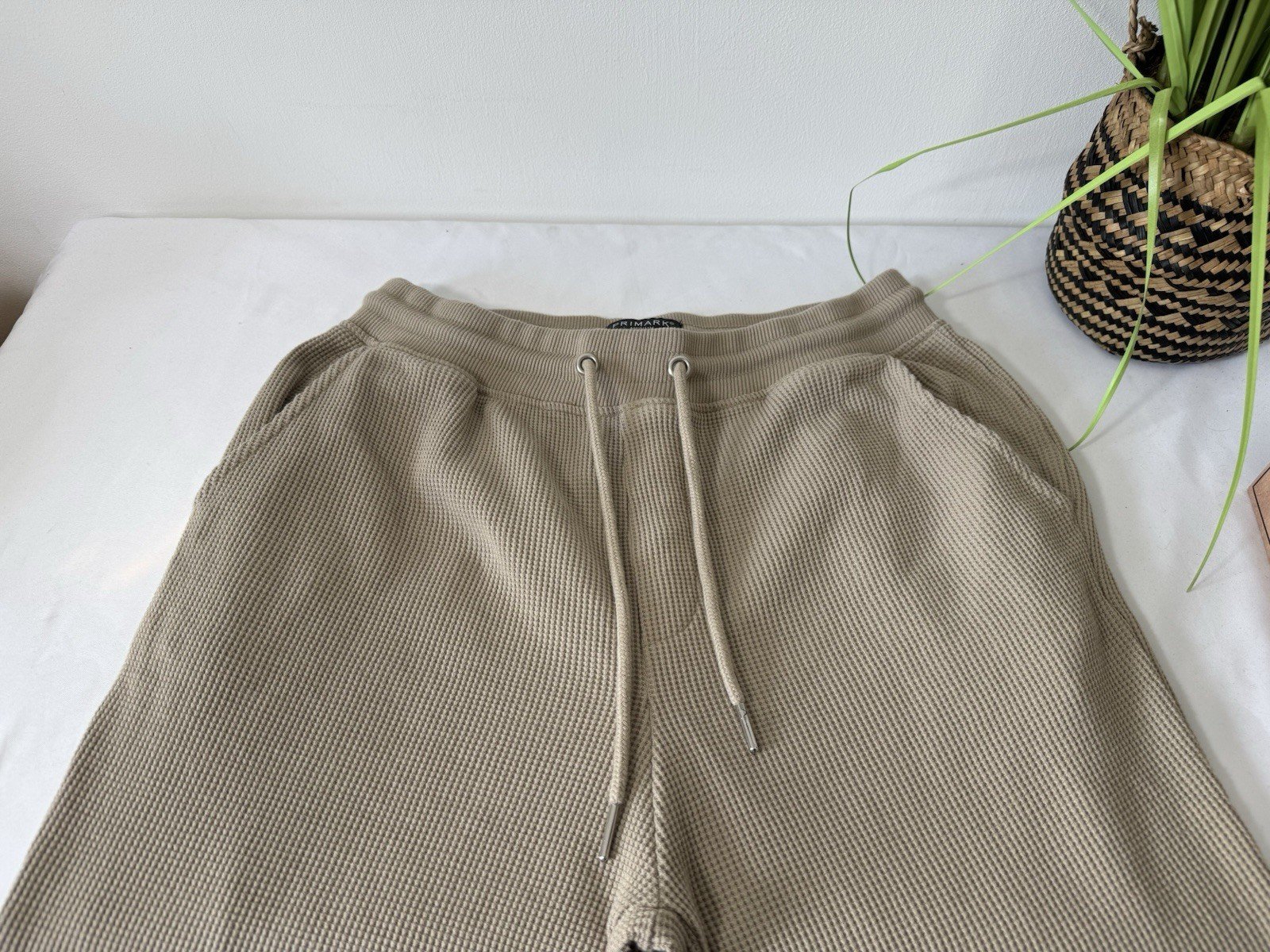 Stone Waffle Weave Joggers Elasticated Waist & Drawstring Size M