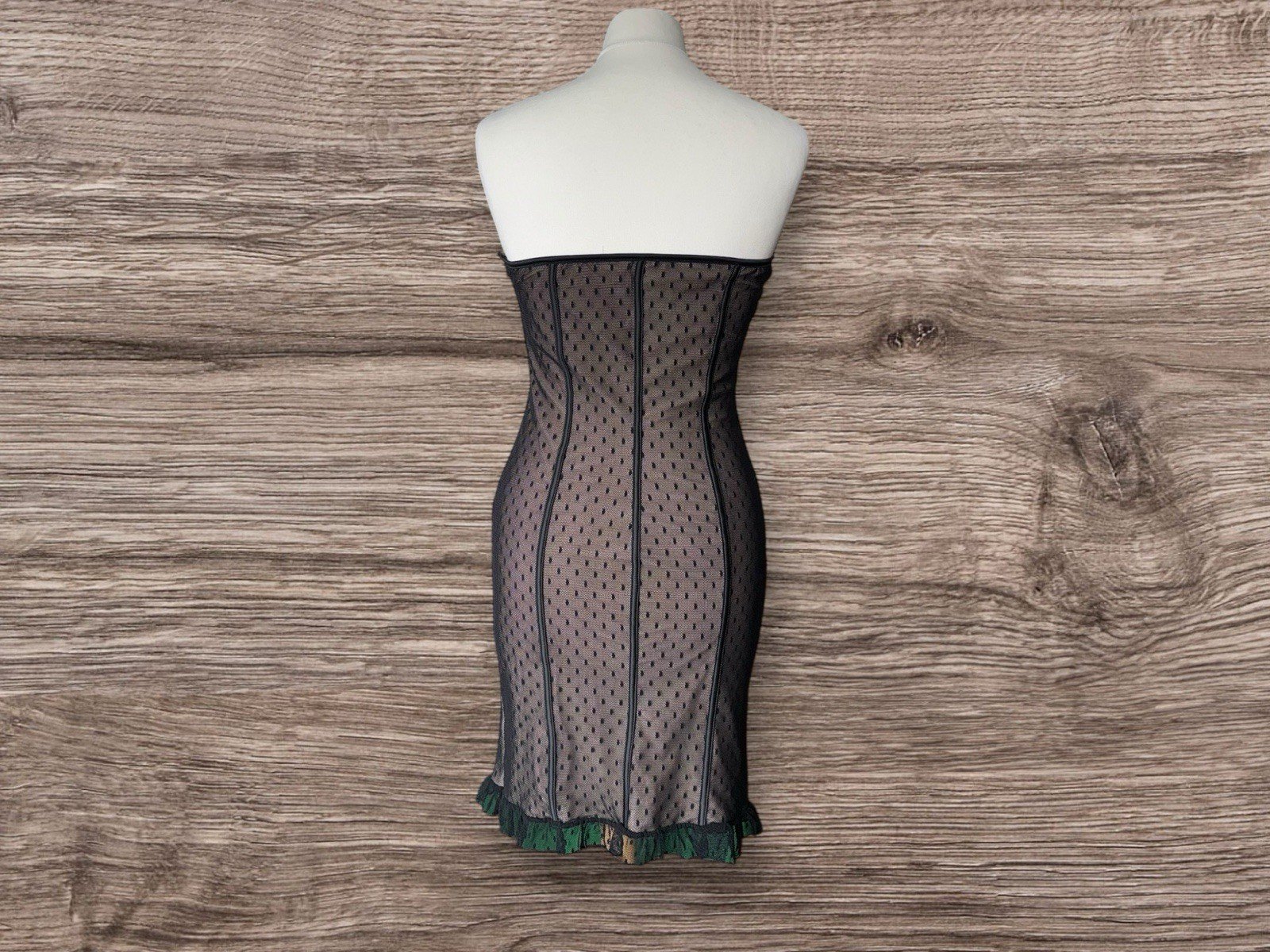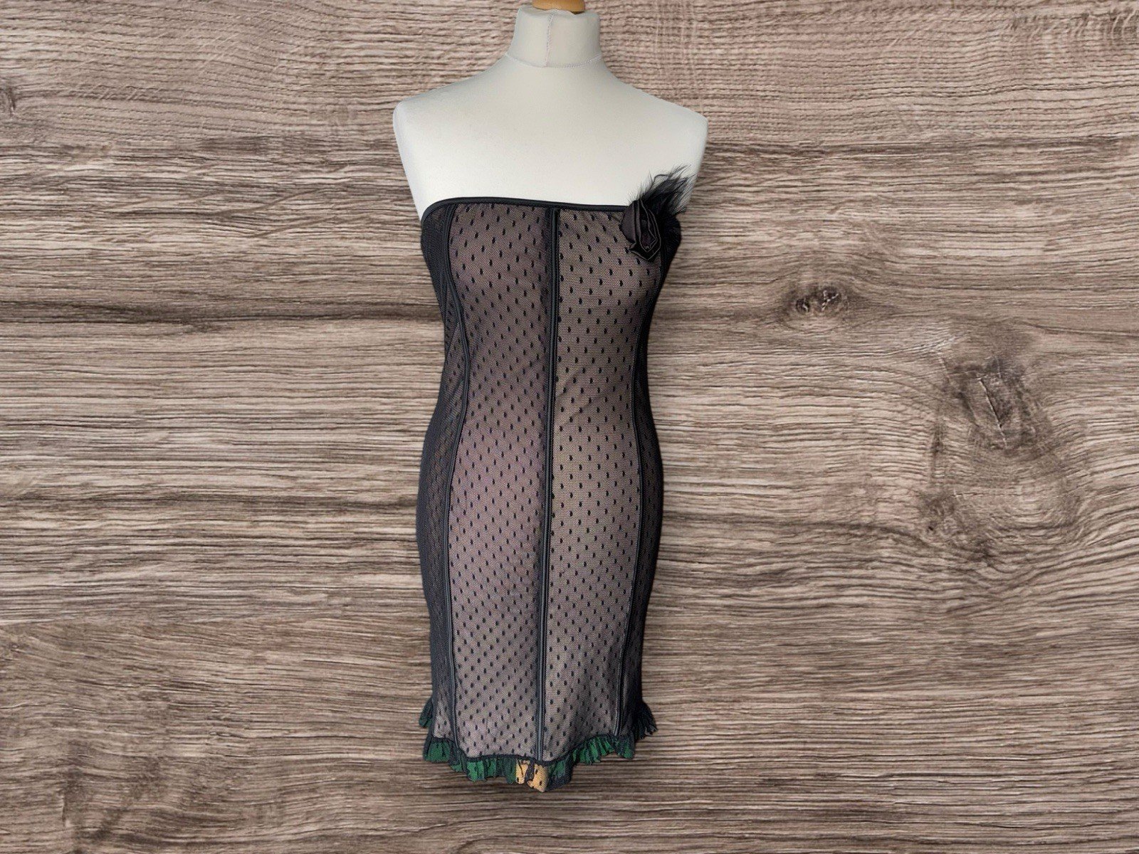 Strapless Lace Effect Overlay Stretch Bodycon Dress Size In Description