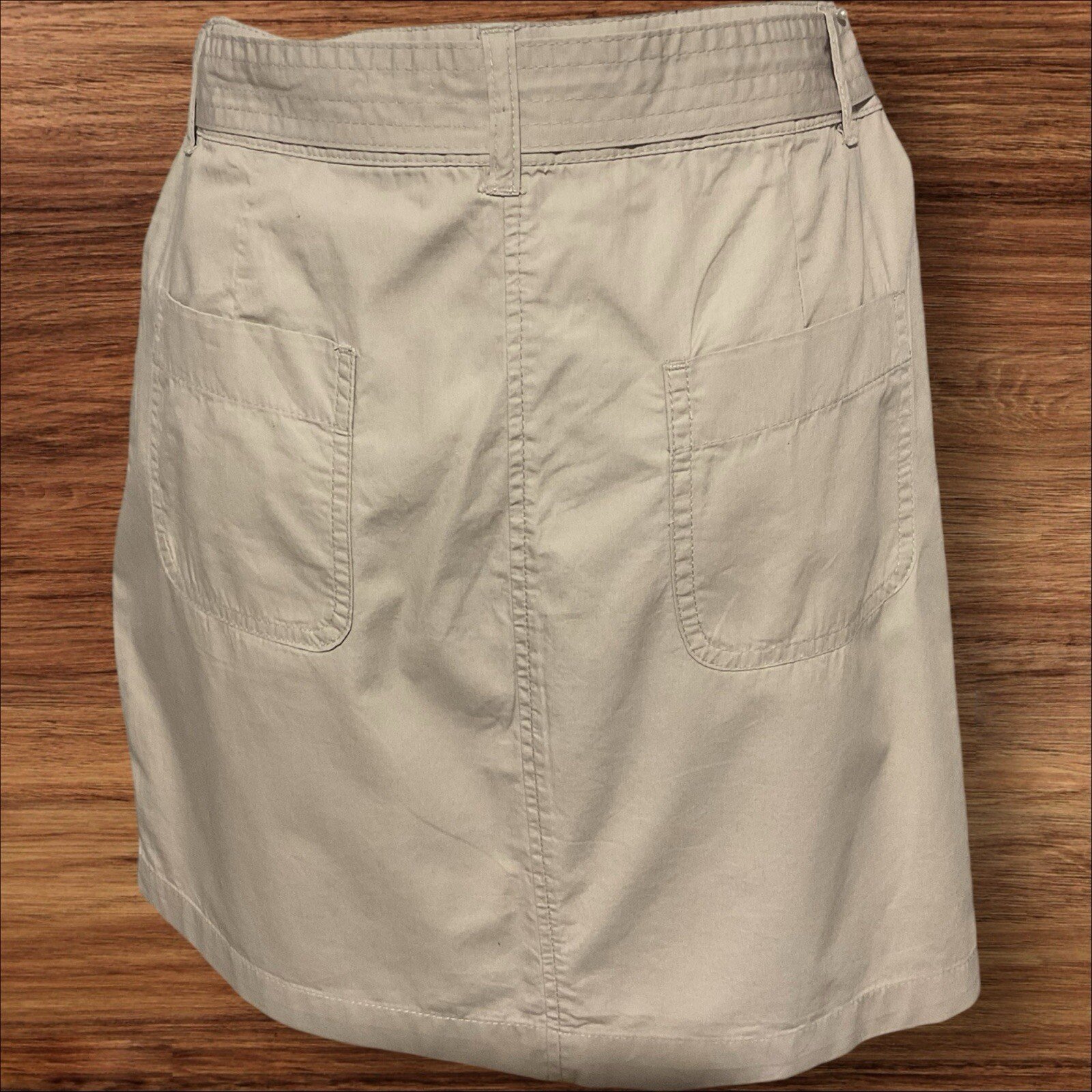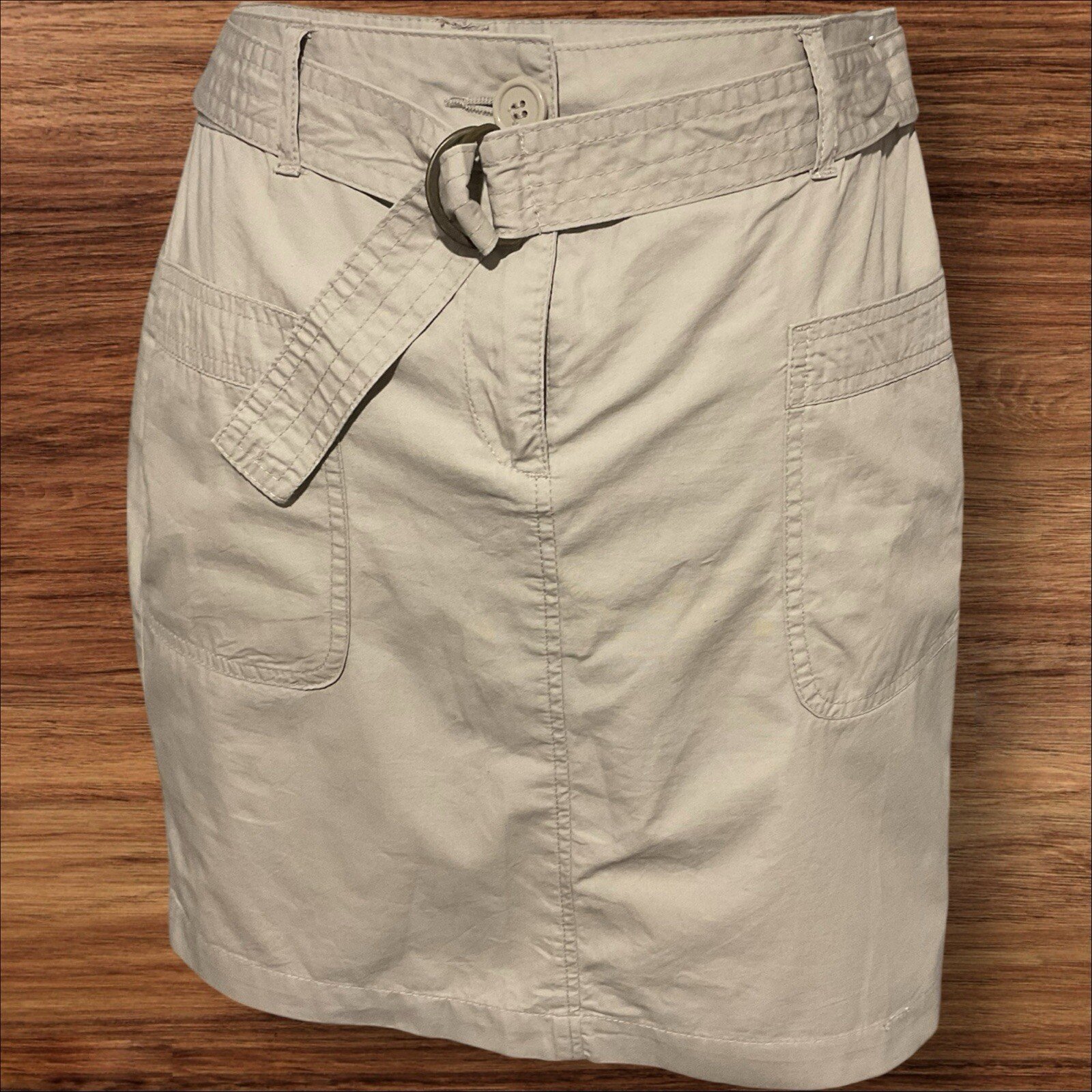 This taupe cotton skirt from Dorothy Perkins is a must-have for any woman's wardrobe. With convenient front and rear pockets, a waistband and belt, and a zip/button closure, this straight-style skirt is both practical and stylish. Made from high-quality cotton material, it is comfortable to wear and easy to care for. The skirt is a size 10 and features accents in the form of a zip and button closure. Its versatile style and colour make it a great addition to any outfit, whether it's a casual day out or a dressy occasion. Excellent Condition From a smoke and pet free home