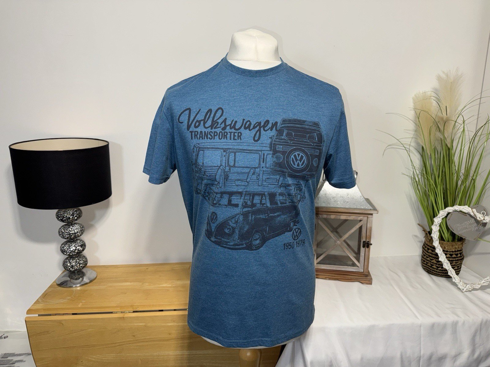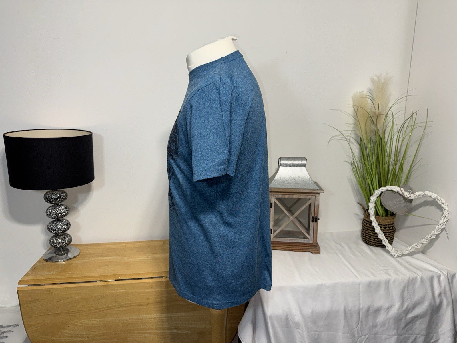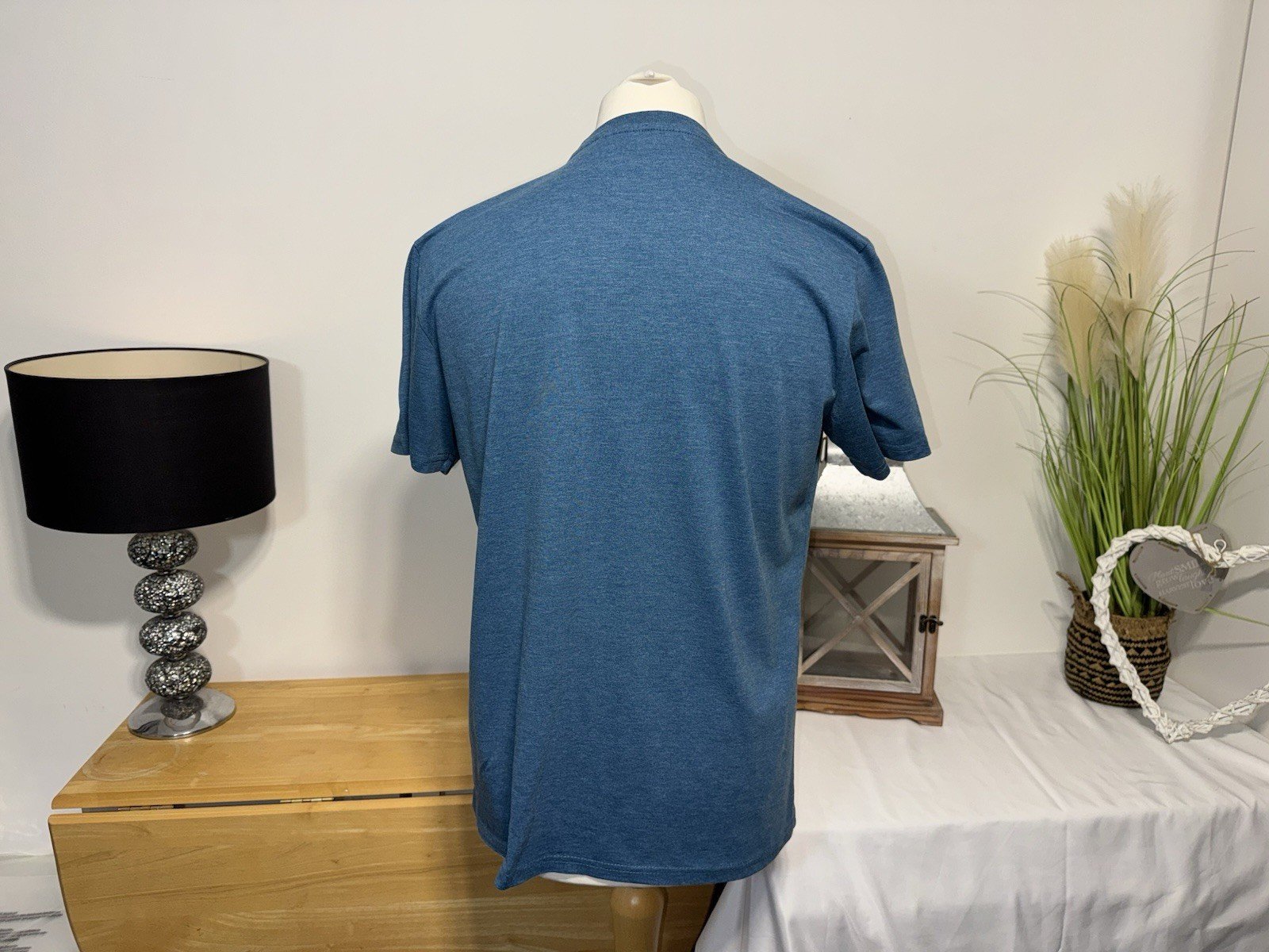 Pit-pit 22in. Length 27inThis Teal Graphic Tee in size L is a stylish addition to any man's wardrobe. Made by George At Asda, the regular fit T-shirt features a round neckline, short sleeves, and a comfortable polyester/cotton material blend. The teal colour adds a vibrant touch, perfect for casual everyday wear or for expressing a fun and unique style.