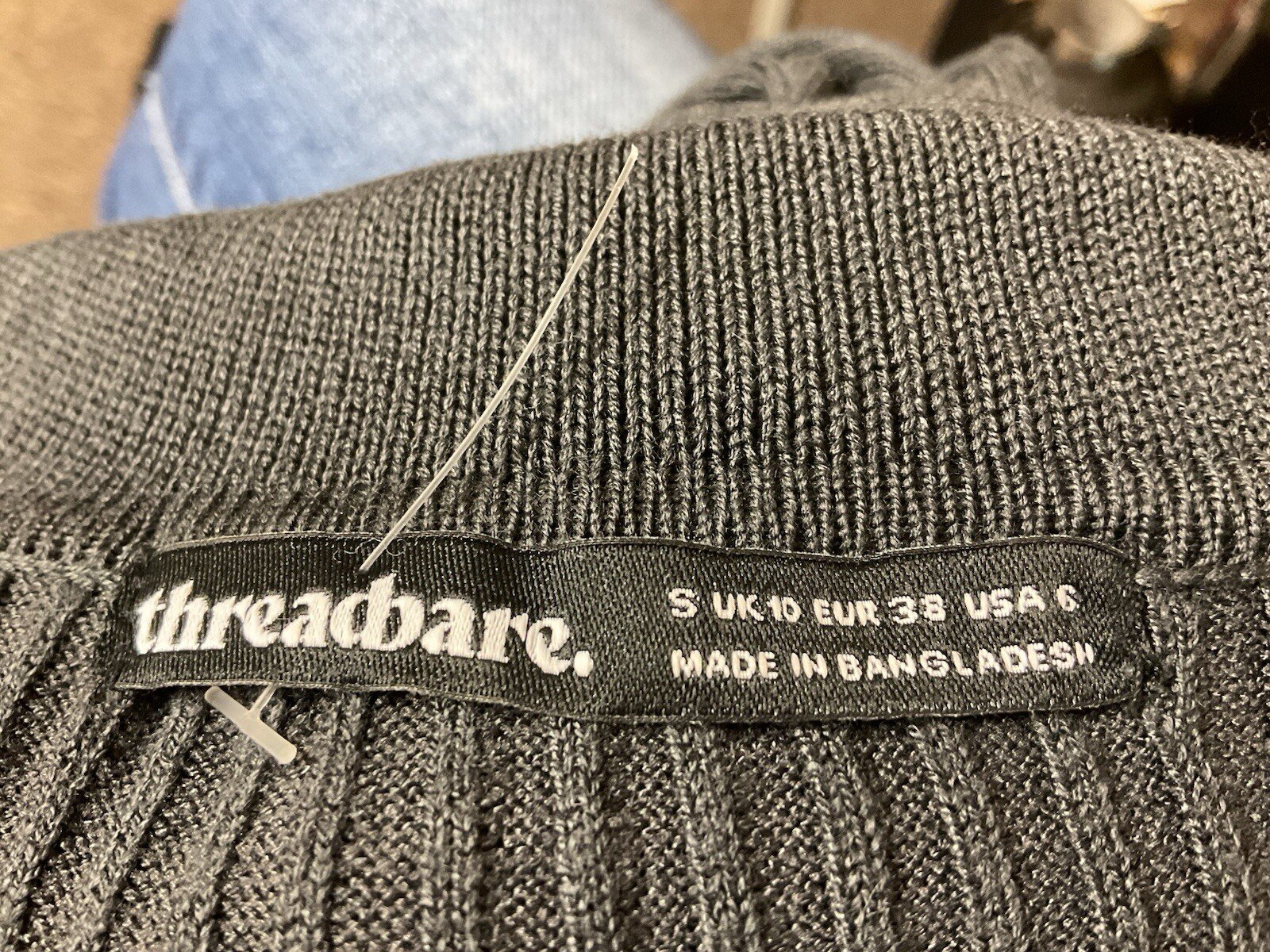 WORN ONCE…..This Threadbare jersey dress in charcoal is a stylish addition to any wardrobe. With its ribbed texture and button-through front, it's perfect for a casual yet chic look. The dress is made of a blend of polyamide and viscose, which gives it a comfortable feel and easy to wear. It's a size 10 and has long sleeves, making it suitable for cooler weather. The dress is 48 inches in length, which is a great length for any occasion. The fabric type is jersey, which adds to its comfort and ease of wear. This dress is perfect for any woman who wants to look fashionable without sacrificing comfort. Pit-pit 17.5in