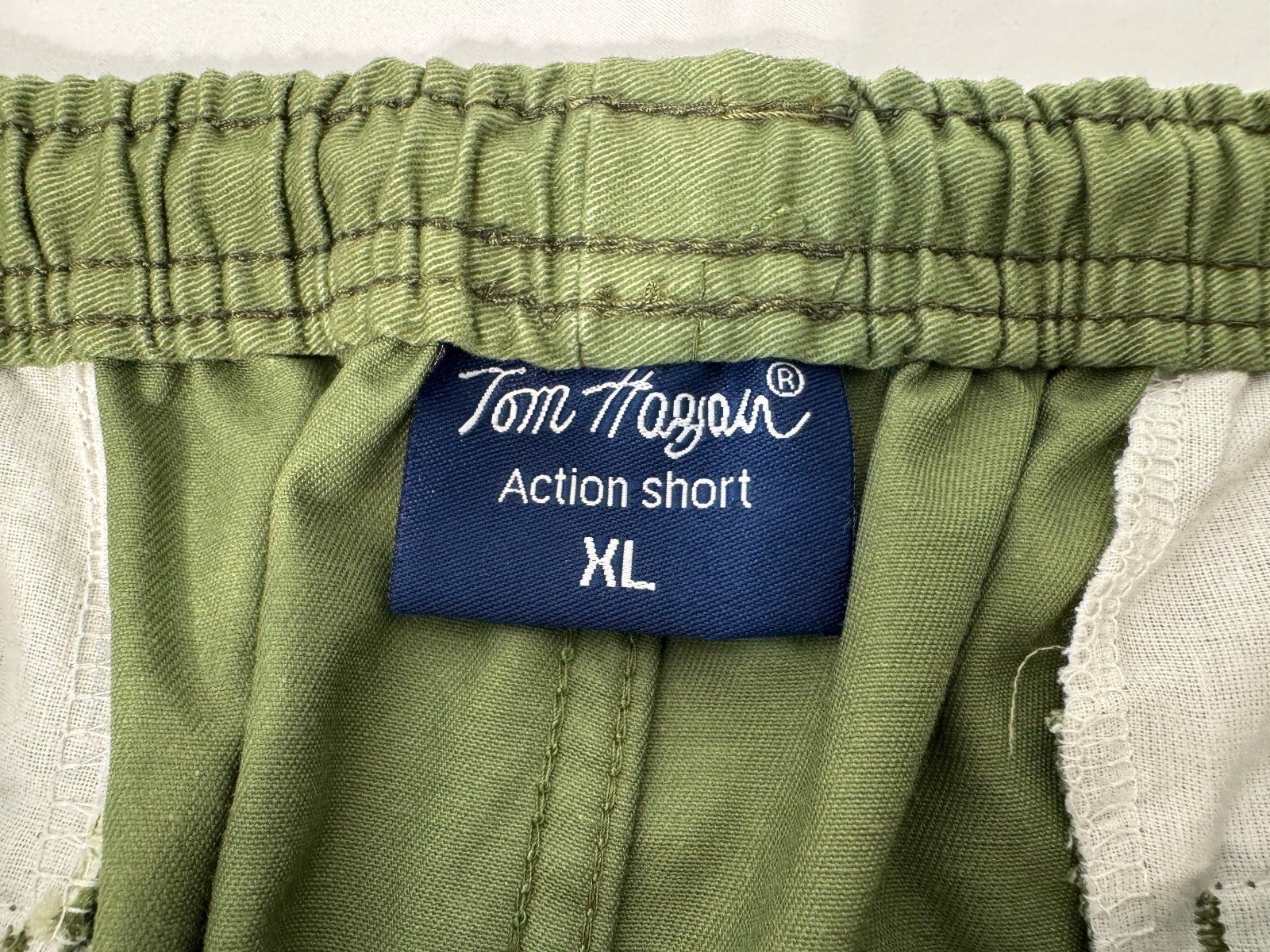 These Tom Hagan Green Action Shorts are designed with an elasticated waist and a drawstring closure for a comfortable fit. The XL size makes them perfect for a casual occasion, with a Bermuda style and flat front. The green colour adds a pop of colour to any outfit, and the inclusion of pockets adds functionality. Easy to care for with machine washable fabric, these shorts are a stylish and practical addition to any man’s wardrobe.