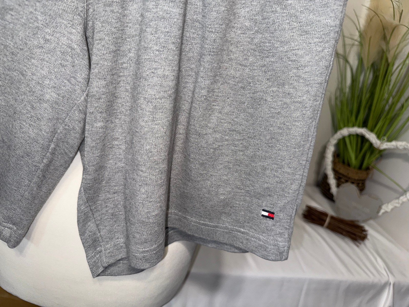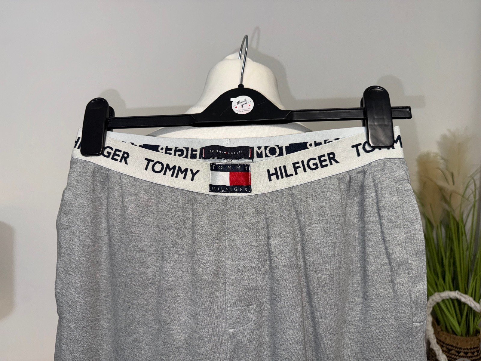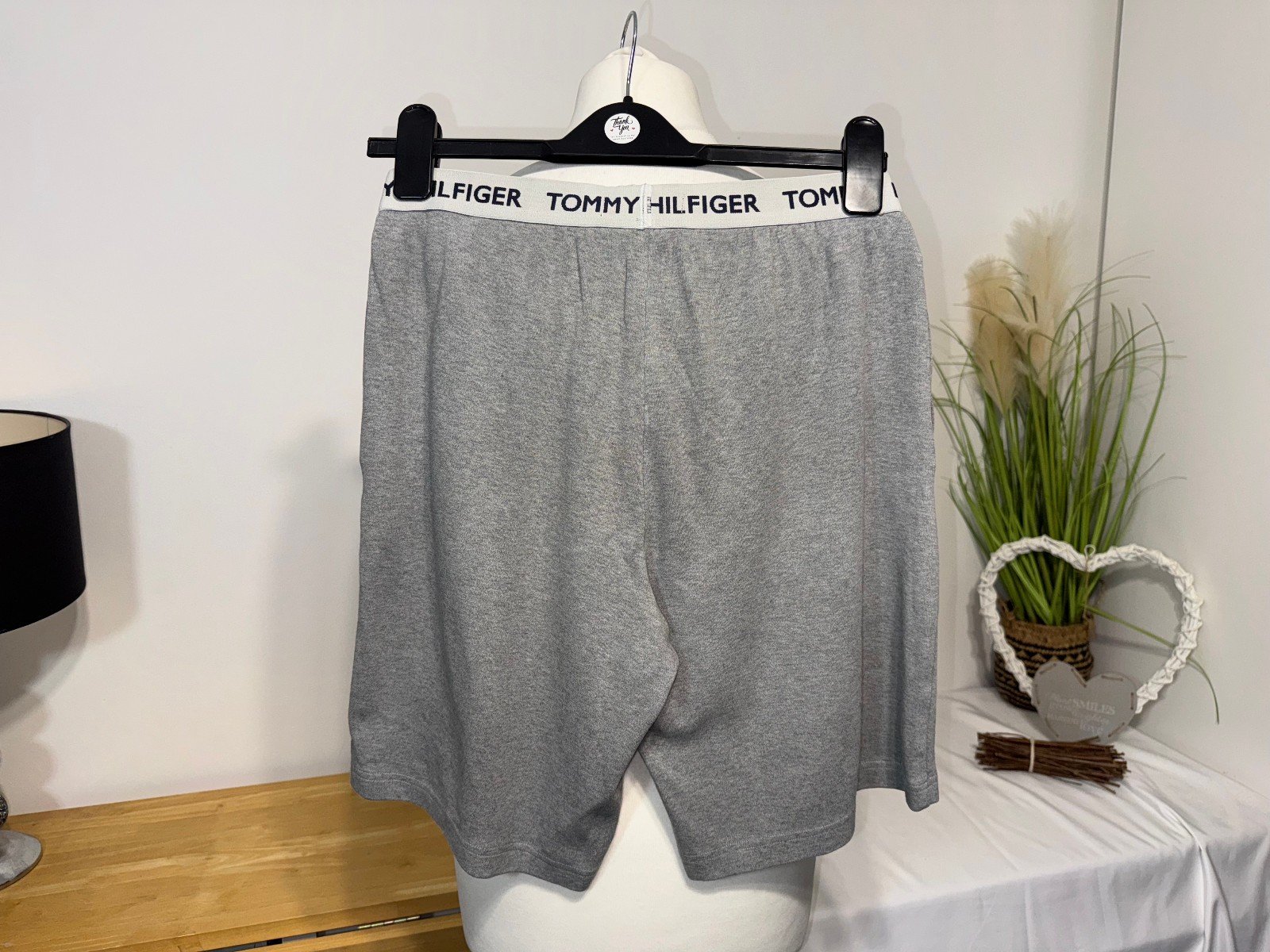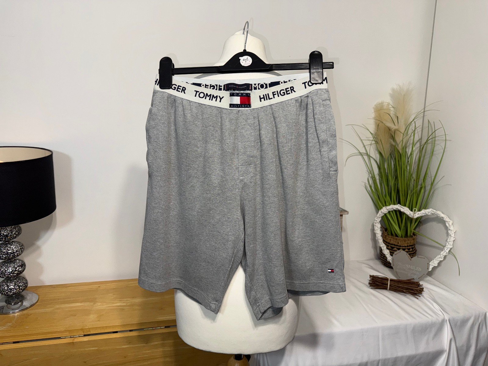 These Tommy Hilfiger Jersey Knit Graphic Lounge Shorts in size M/L are perfect for casual occasions. Made from comfortable cotton jersey fabric, they feature a logo accent and a regular fit for a relaxed style. The flat front design and slash pockets add practicality and style to these grey sweat shorts, making them a versatile addition to any man’s wardrobe. Easy to care for with machine washable instructions, these Tommy Hilfiger shorts offer both style and convenience for the modern man.ref3