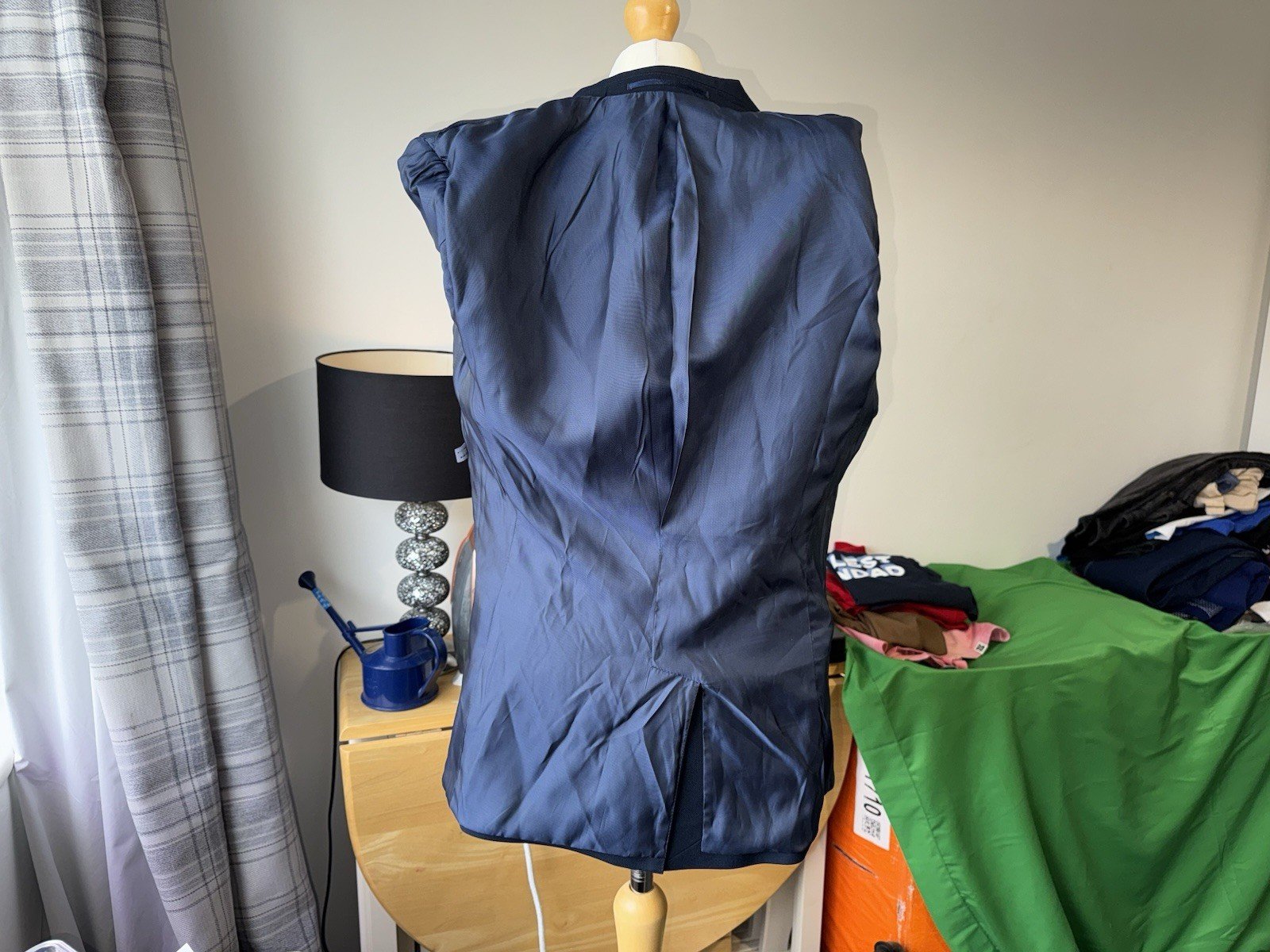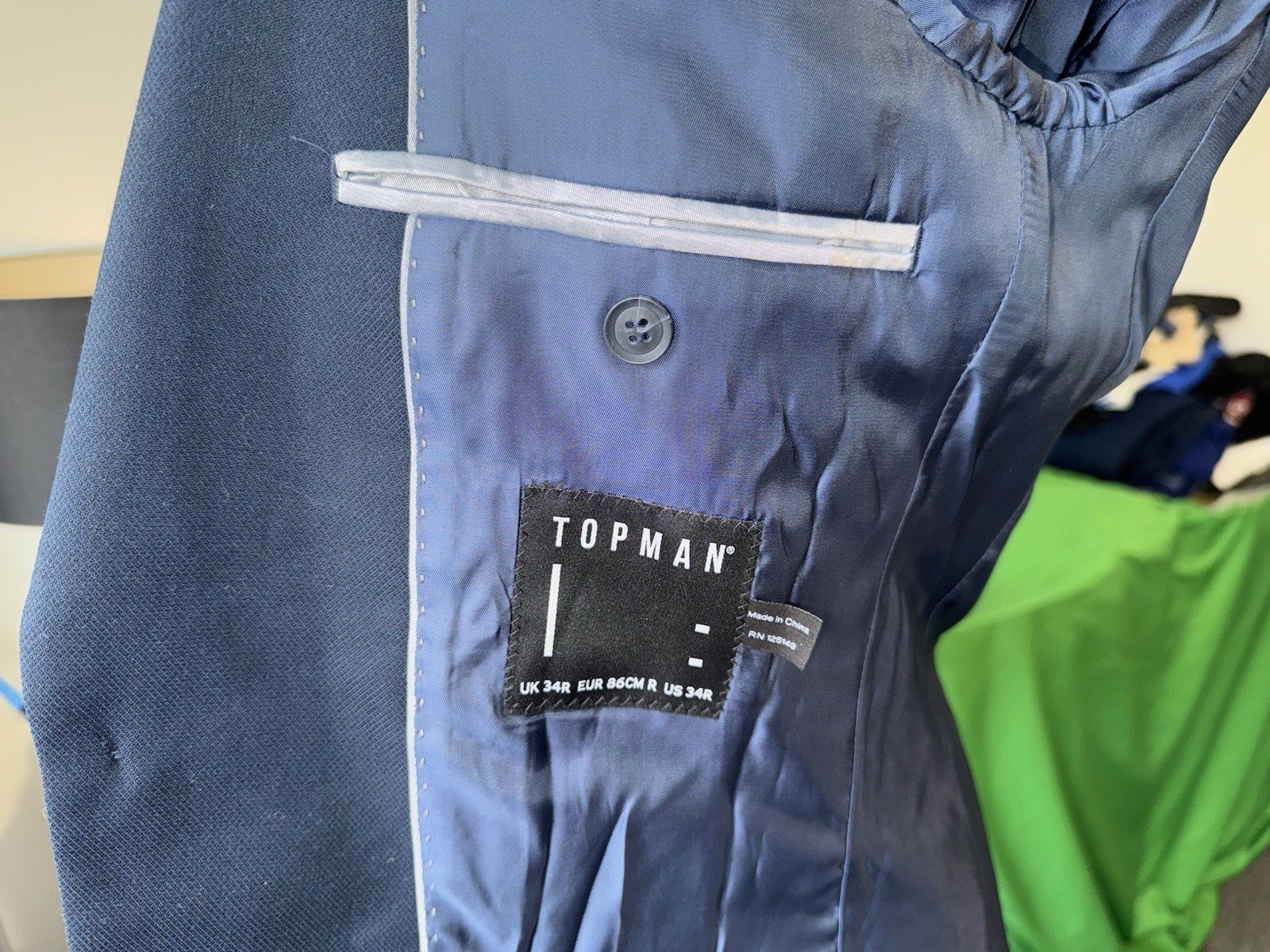 Elevate your wardrobe with this stylish navy blue blazer jacket from Topman. Designed with a single breast and a regular fit, this unisex blazer features a polyester viscose elastane outer shell material and a polyester viscose lining material. It comes with a button closure and two inside pockets, making it perfect for any occasion.The blazer has a pit-pit measurement of 21 inches and a jacket/coat length of 28.5 inches, making it a comfortable and flattering fit for anyone who wears a chest size of 21 inches. The blazer is also equipped with pockets, adding functionality to its elegant design. Add a touch of sophistication to your outfit with this Topman blazer jacket.