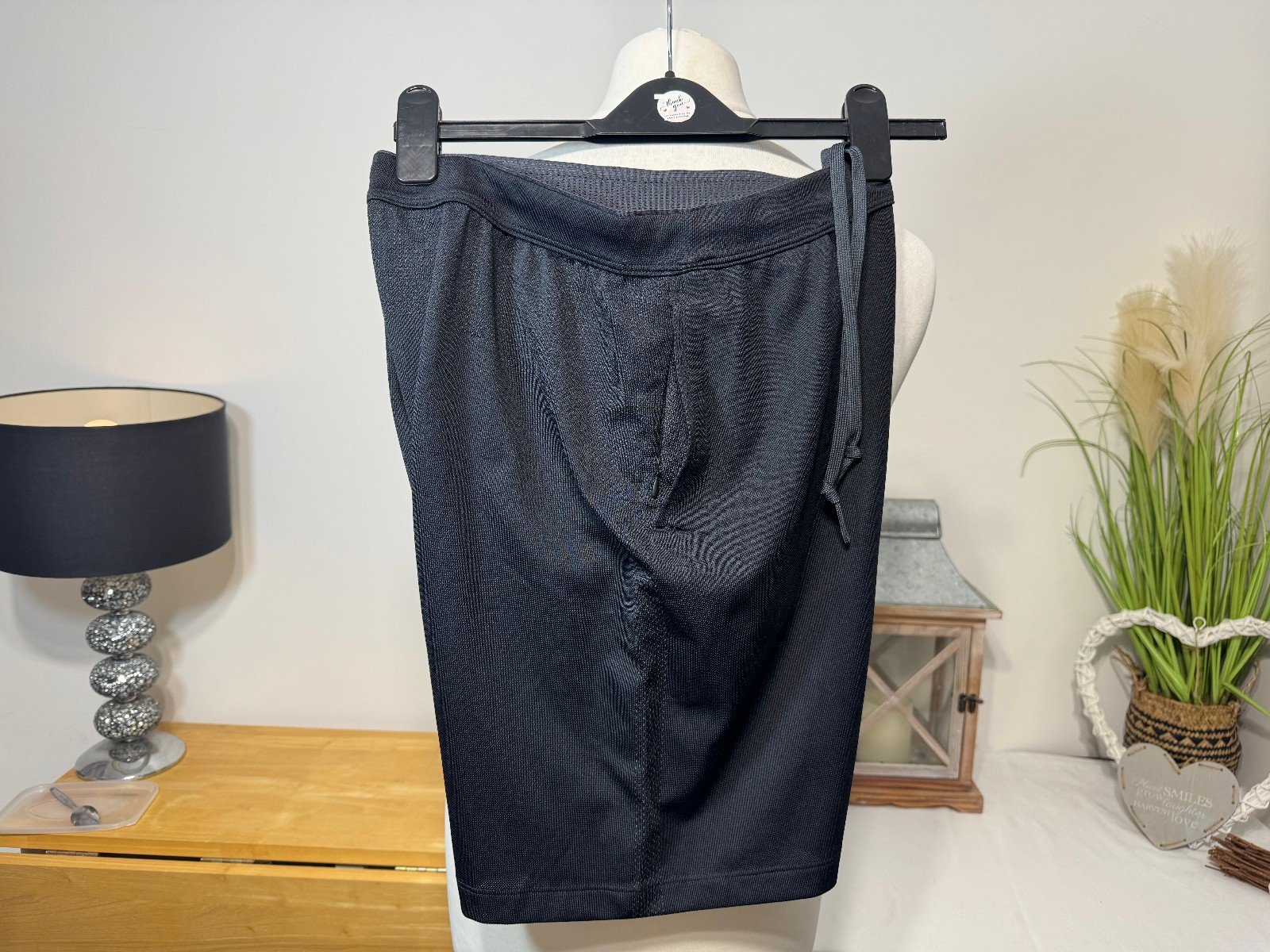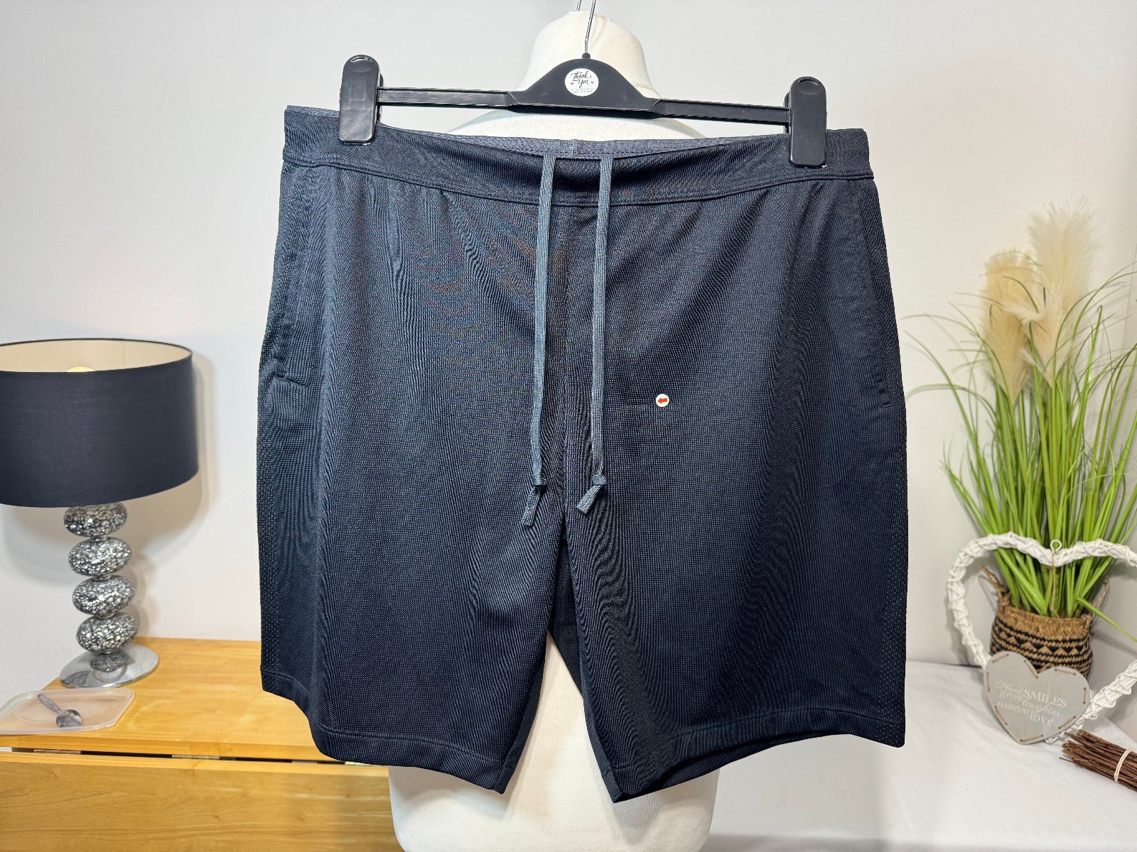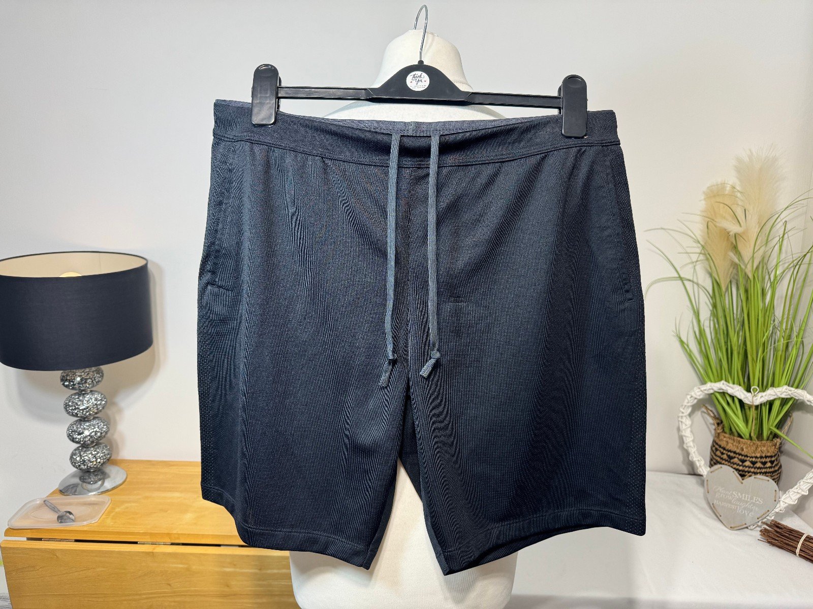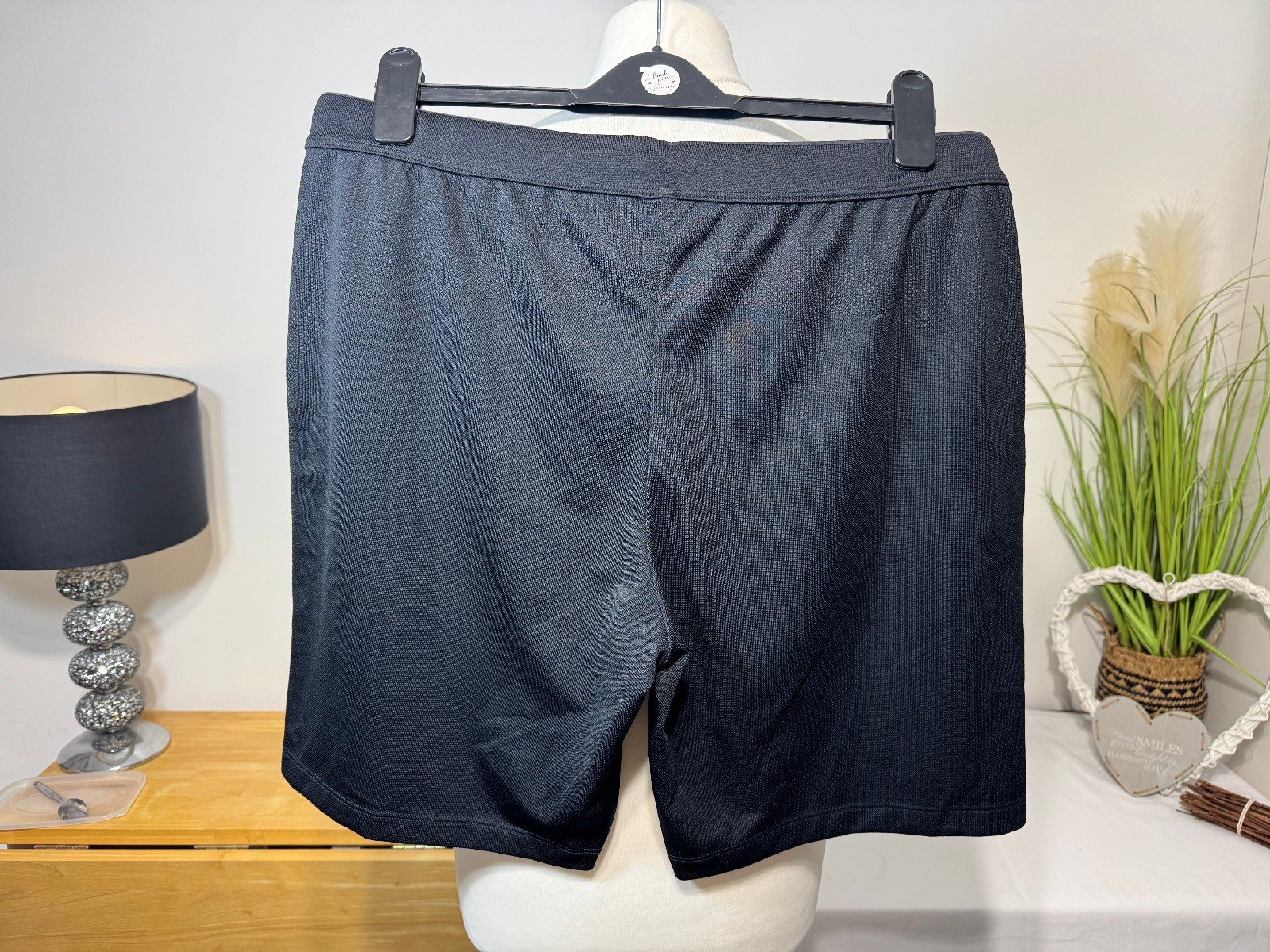 WAIST 34IN NOT STRETCHED. LEG 9INThe UNIQLO Black Stretch Gym Shorts in size XL are a stylish and comfortable choice for men looking for a relaxed fit. Made from polyester, these shorts feature a drawstring closure for a customizable waist and a flat front design. With a sleek black colour and a stretch material, they are perfect for sports activities or casual wear. The slash pockets add functionality while the Uniqlo brand ensures quality and style. Easy to care for with machine washable instructions, these gym shorts are a versatile addition to any man’s wardrobe.ref5