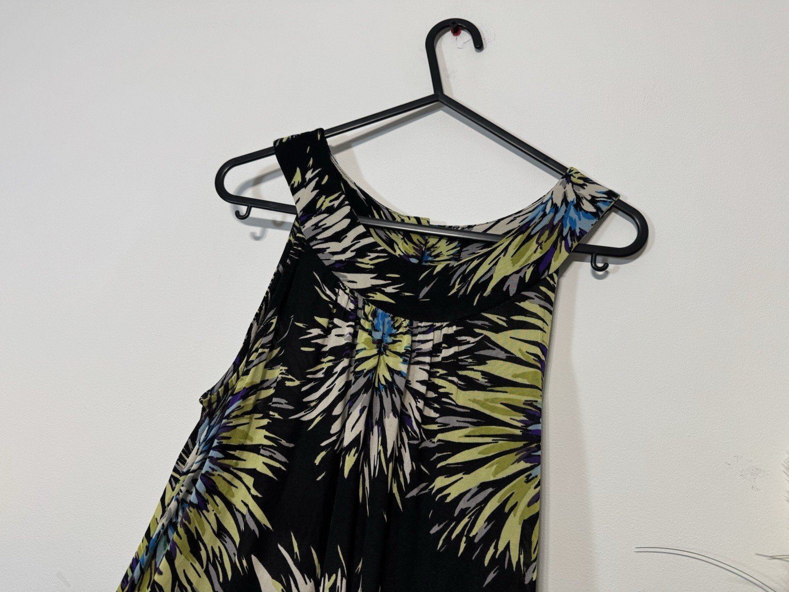 This Wallis Black Floral Waterfall Halter Neck Sleeveless Top in Size S is a stylish addition to any woman’s wardrobe. Made from a blend of viscose and elastane, this top offers a comfortable fit with a touch of stretch. The floral pattern and halter neck add a feminine touch, while the sleeveless design and machine washable care make it a practical and versatile piece for everyday wear. Perfect for pairing with jeans or trousers, this blouse from Wallis is a must-have for any fashion-conscious woman.