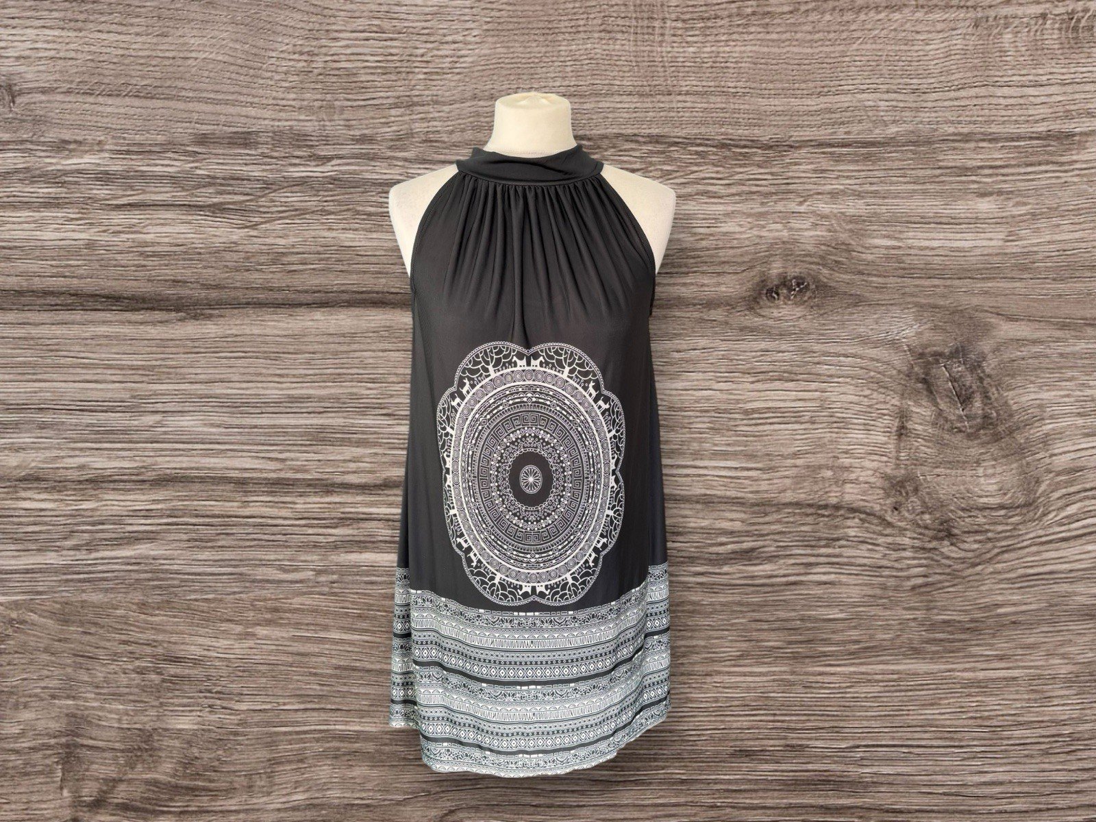 Elevate your beach day style with this chic Who&Why Black Graphic Halter Beach Dress. The sleeveless design and halter neckline provide a stylish and comfortable fit, while the tie closure ensures a perfect fit for all body types. The dress is made of a soft and breathable blend of polyester and cotton, making it ideal for hot summer days. The dress length is 30 inches, providing ample coverage for a day at the beach. The black colour and beach theme make it a versatile addition to any summer wardrobe. This dress is perfect for women who want to look stylish and feel comfortable on their next beach day.