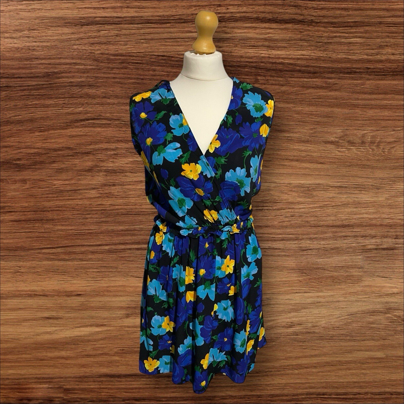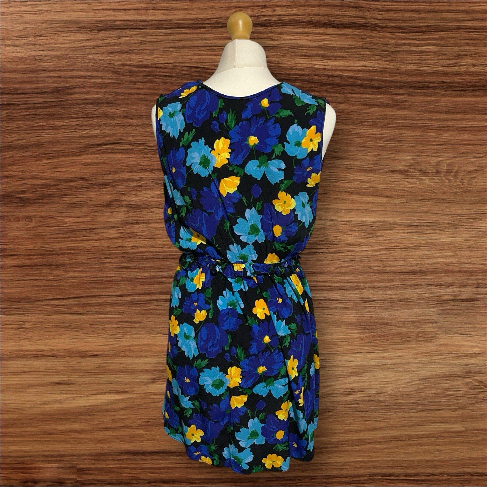 Womens Zara Blue Flower Pattern Slip Dress Elasticated Waisted V Front Size S