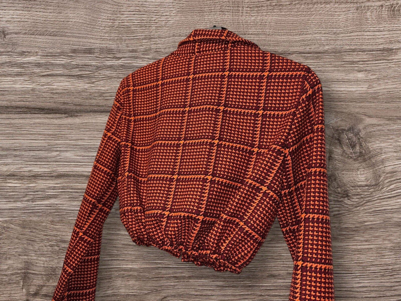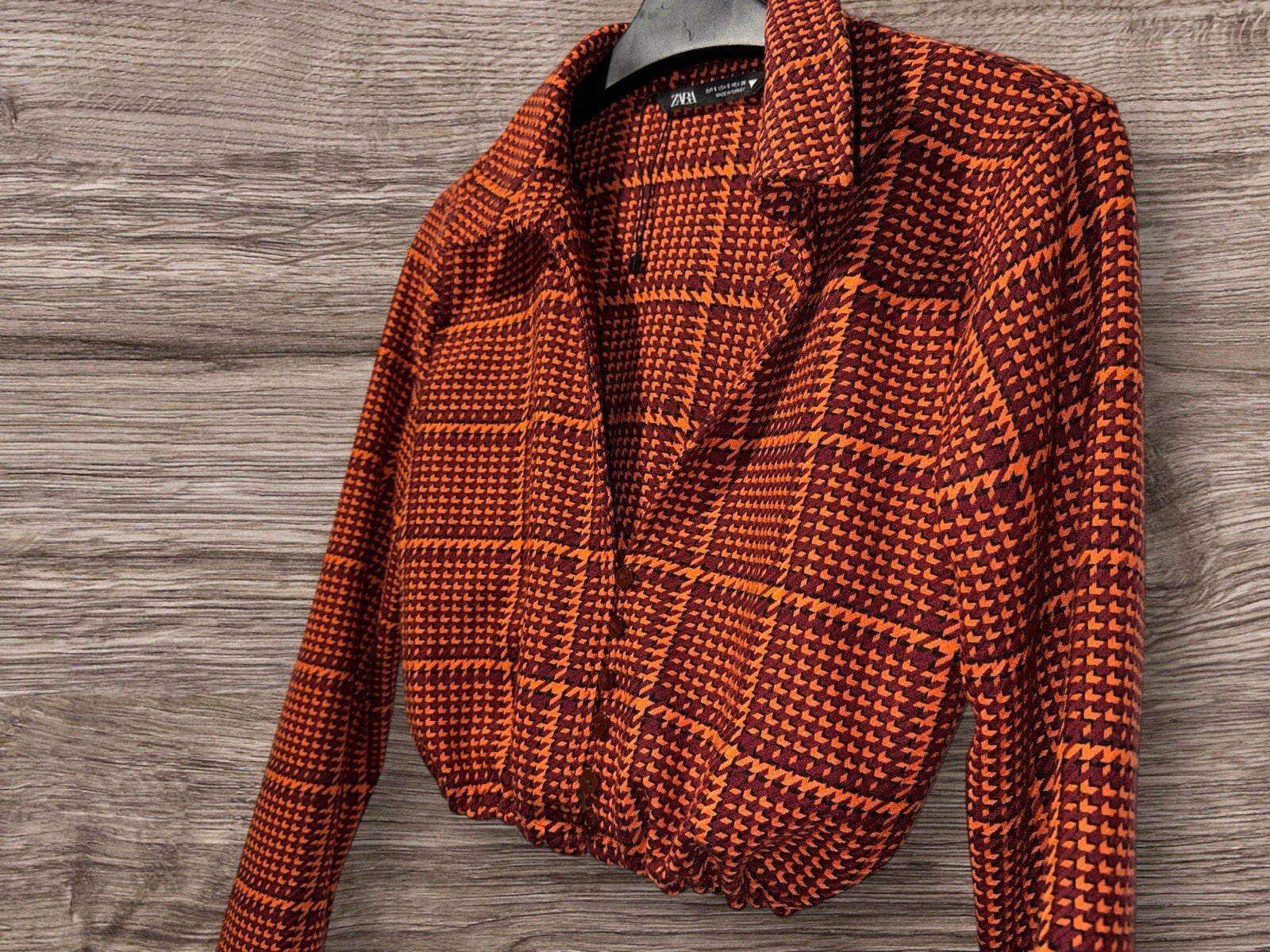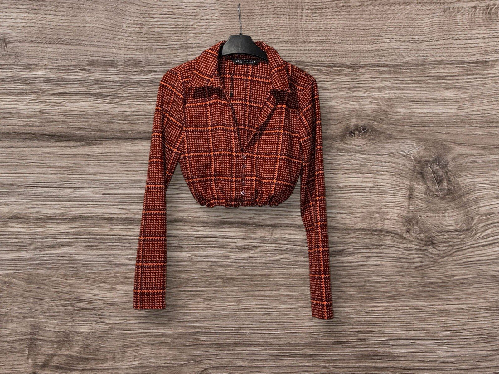 Embrace the blend of comfort and style with this Zara burgundy and burnt orange crop top. Designed for the fashion-forward woman, the top features a textured detail that adds a touch of sophistication to your casual ensemble. The combination of viscose, polyester, and elastane materials ensures a snug fit while offering the flexibility for a range of movements. This piece comes in a regular size S, tailored to accentuate your figure with its cropped style. It's an ideal choice for those who appreciate a pop of colour in their outfit. The long sleeves complement the overall design, making it a versatile addition to your wardrobe for various occasions. Pit-pit 18in. Length 14in. Whilst every care is taken to ensure the garments are checked to a high standard and most are in As New Condition. However they are used garments and therefore may show some small signs of wear