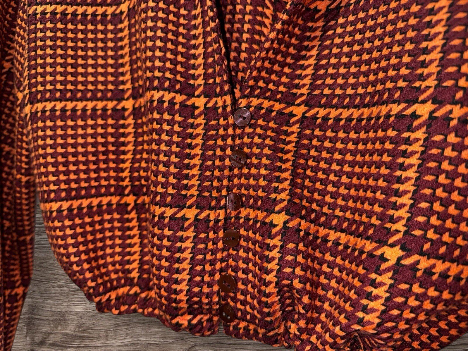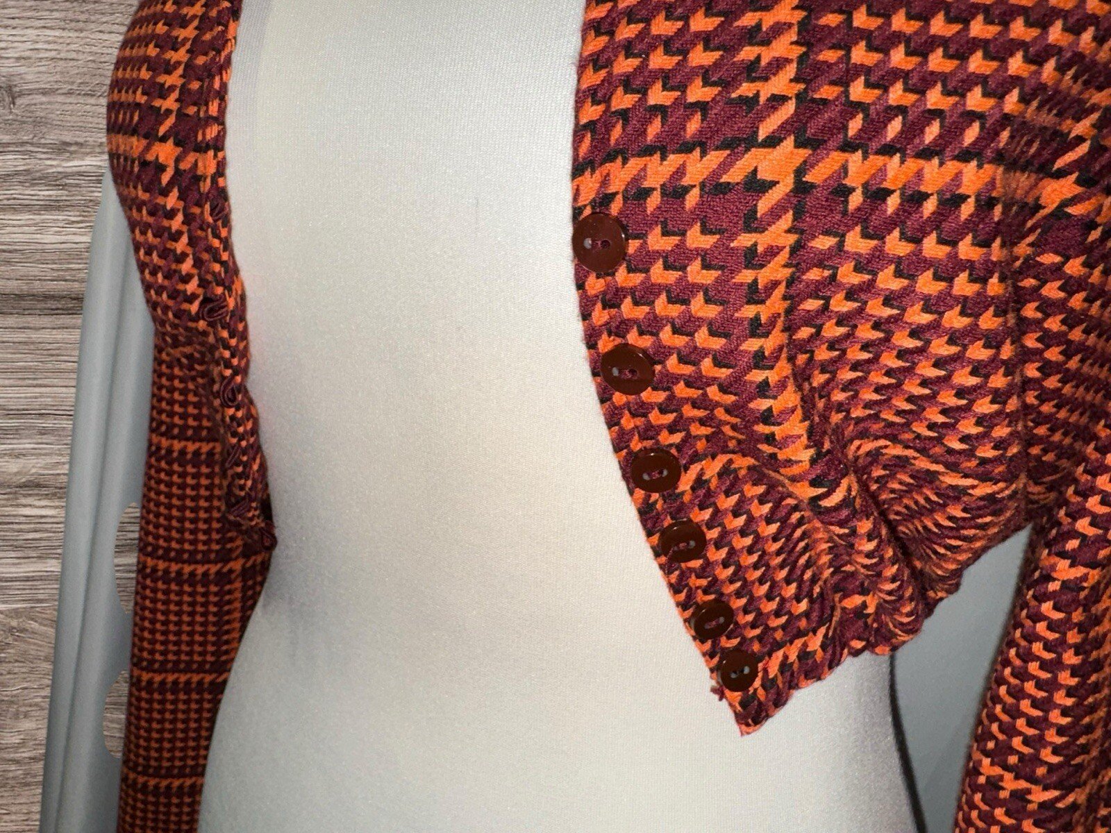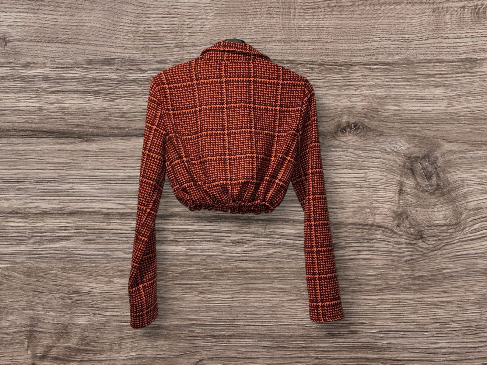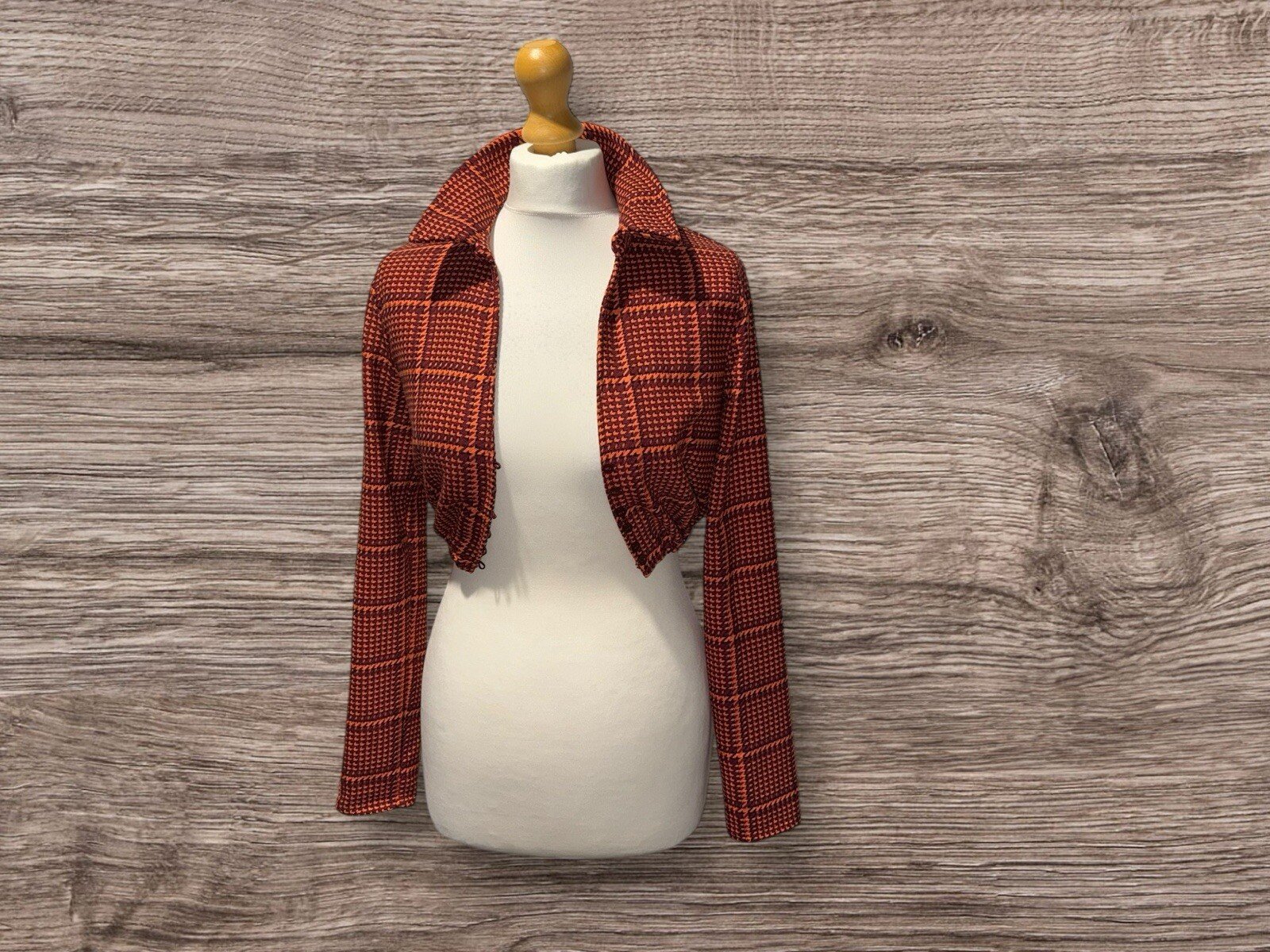 Embrace the blend of comfort and style with this Zara burgundy and burnt orange crop top. Designed for the fashion-forward woman, the top features a textured detail that adds a touch of sophistication to your casual ensemble. The combination of viscose, polyester, and elastane materials ensures a snug fit while offering the flexibility for a range of movements. This piece comes in a regular size S, tailored to accentuate your figure with its cropped style. It's an ideal choice for those who appreciate a pop of colour in their outfit. The long sleeves complement the overall design, making it a versatile addition to your wardrobe for various occasions. Pit-pit 18in. Length 14in. Whilst every care is taken to ensure the garments are checked to a high standard and most are in As New Condition. However they are used garments and therefore may show some small signs of wear